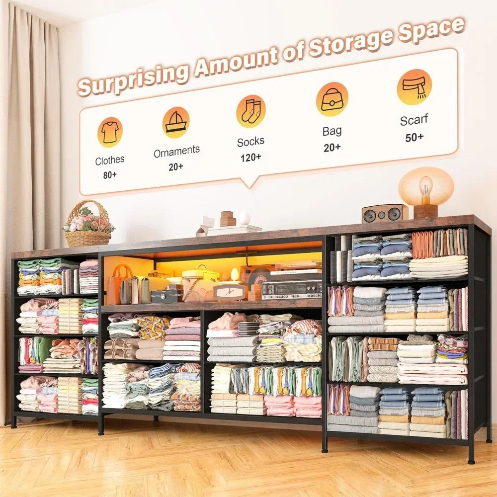 Ljustra 75 Inch TV Stand Dresser with LED Lights 12 Drawers and Outlets