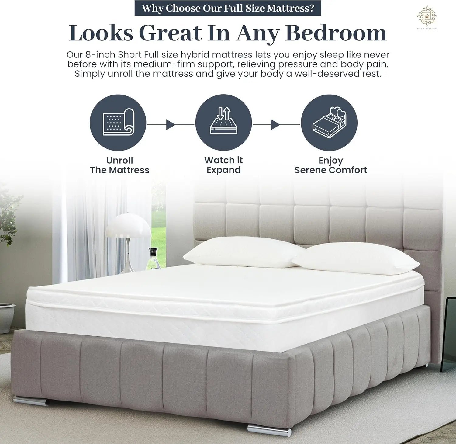 Upgrade your sleep experience today with the Ljustra 8 Inch Hybrid Full Size Mattress and wake up refreshed and rejuvenated every morning!