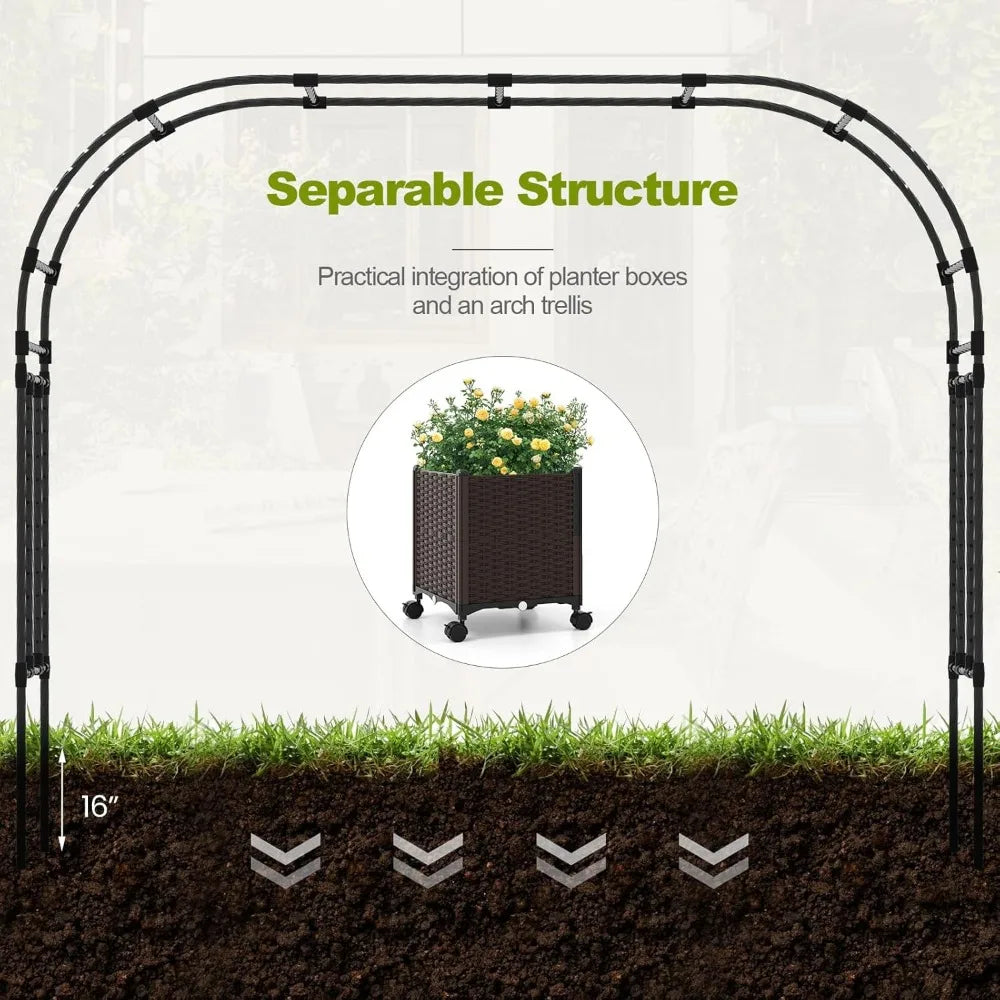 80 Inch Garden Arch Trellis Pergola with Planter Boxes Self-Watering