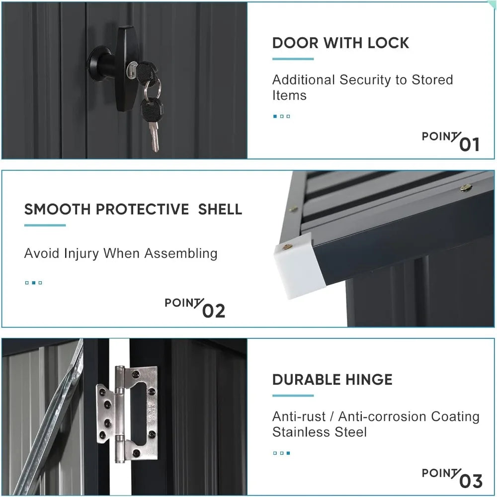 8x6 Outdoor Storage Shed Galvanized Metal Garden Shed with Lock