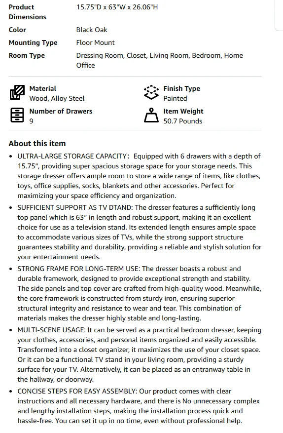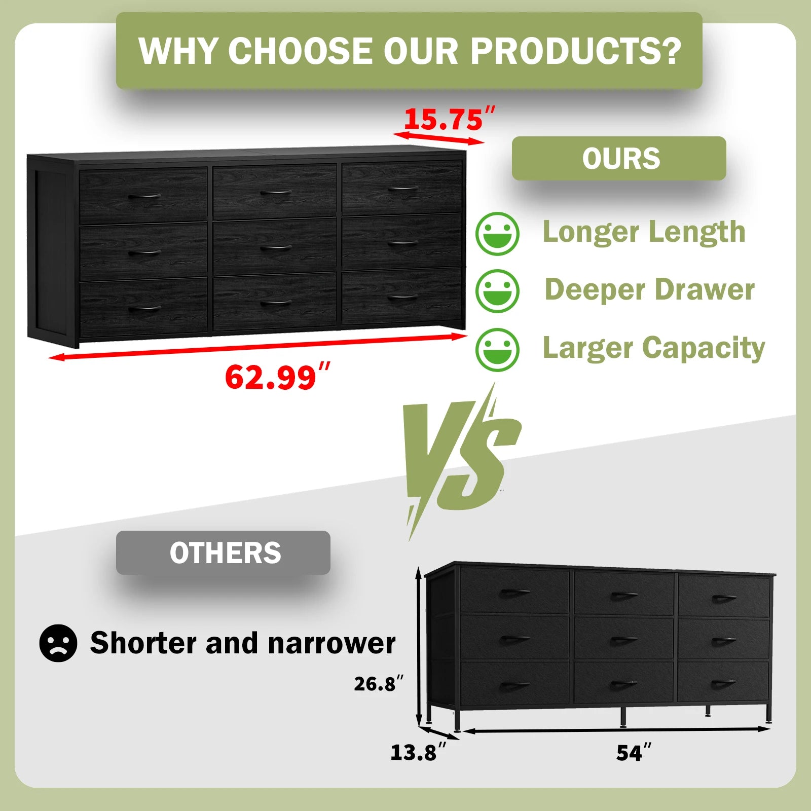 - Spacious Storage: With 9 generous drawers, you'll have ample space to organize clothing, accessories, and more.