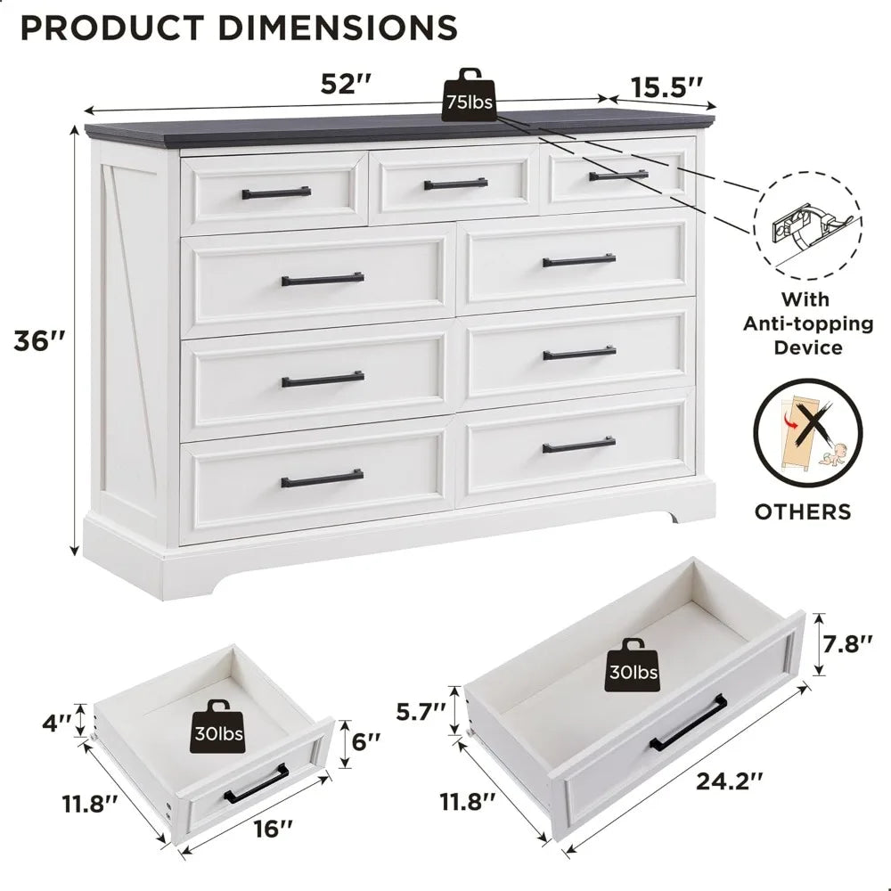 **** Farmhouse 9 Drawer Dresser Tall Modern Bedroom Storage Furniture