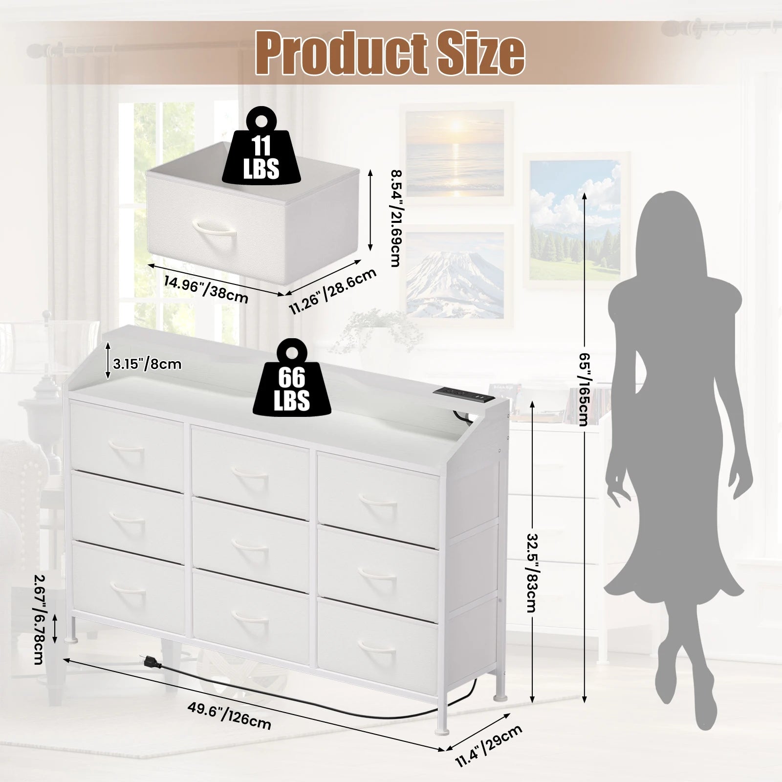 Dresser with 9 Drawers LED Lights Charging Station for Bedroom Furniture