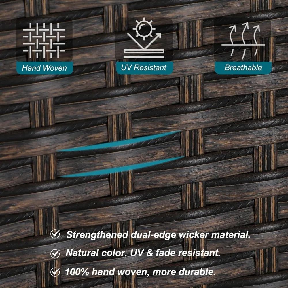 - Cushioned Rattan Chairs: Enjoy long-lasting comfort with tightly woven, weather-resistant wicker chairs featuring 1.97" thick padded cushions. These chairs are designed to withstand the elements while providing ultimate relaxation.
