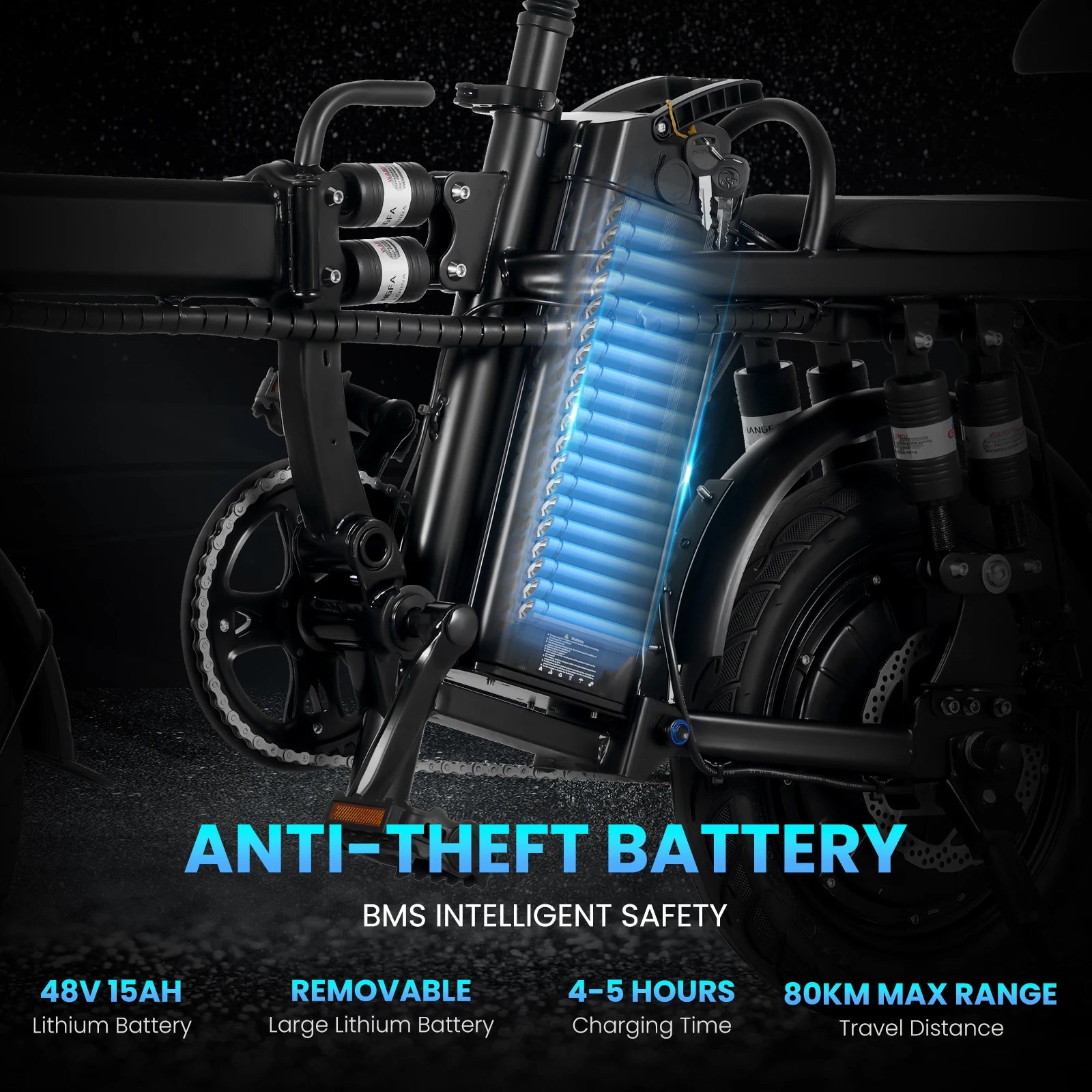 - Long-Lasting Battery: 48V 15AH lithium battery that provides a range of 10-30 km on a single charge.