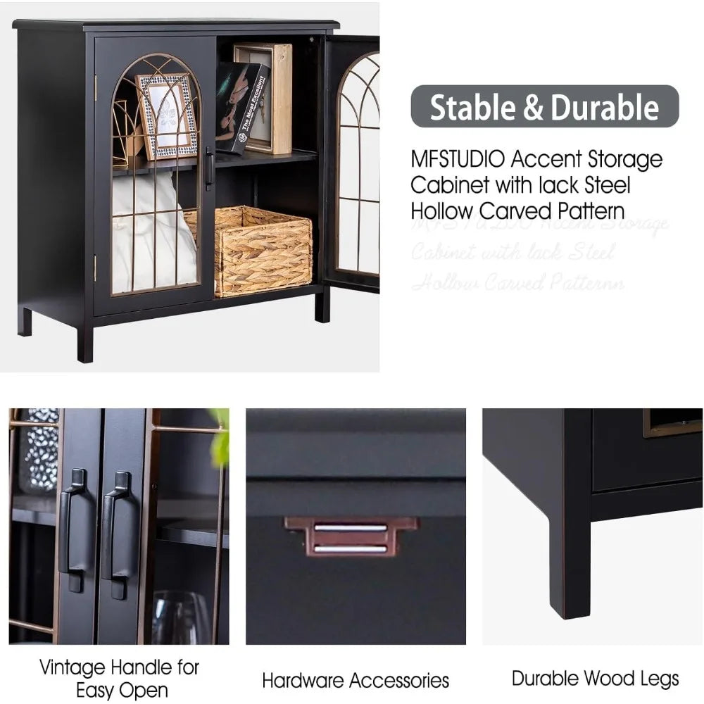 - Versatile Use: The metal hollow-carved doors with a church window design not only enhance visibility but also add a decorative flair, making this cabinet ideal for displaying decor or organizing daily items.