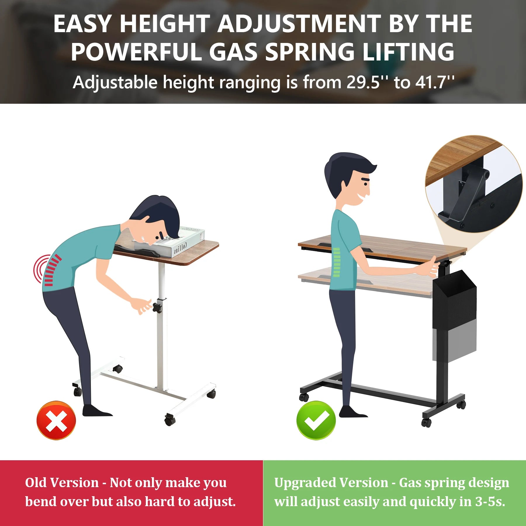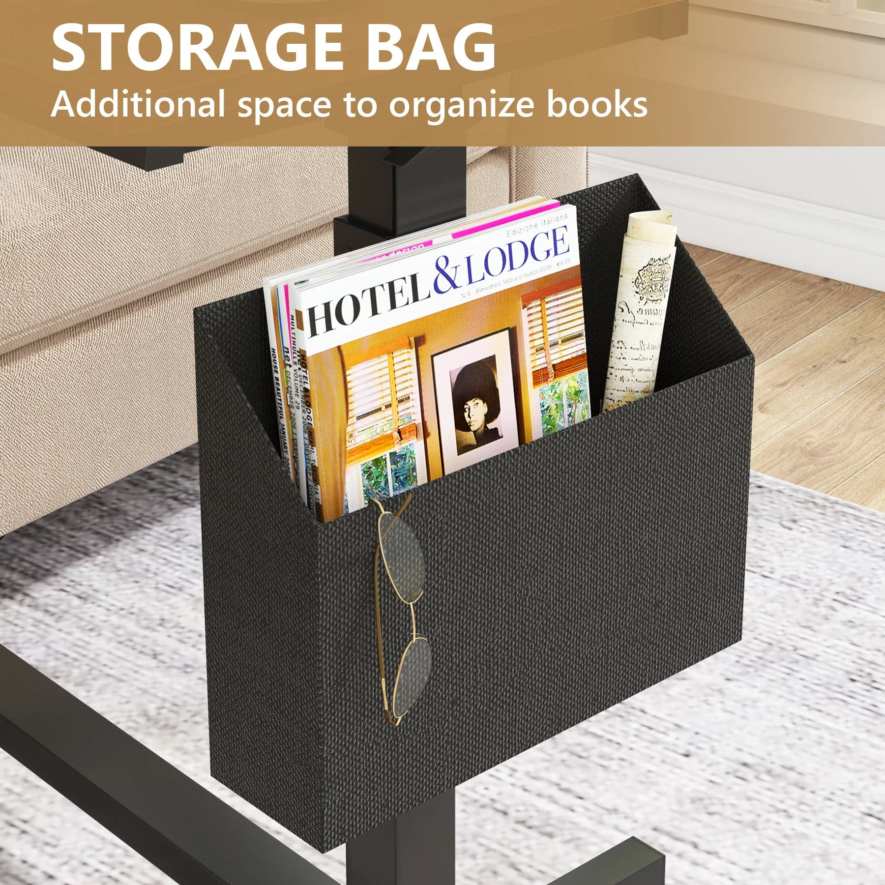 Tribesigns Height Adjustable C Shaped End Table with Wheels and Pocket