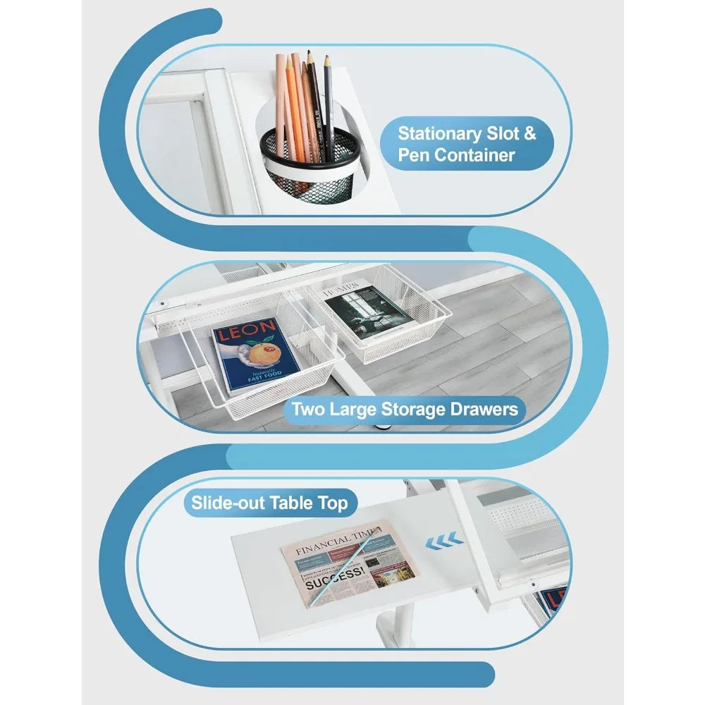 - Ample Storage: Equipped with multiple compartments, a 24-inch pencil ledge, and hanging drawers to keep your supplies organized.