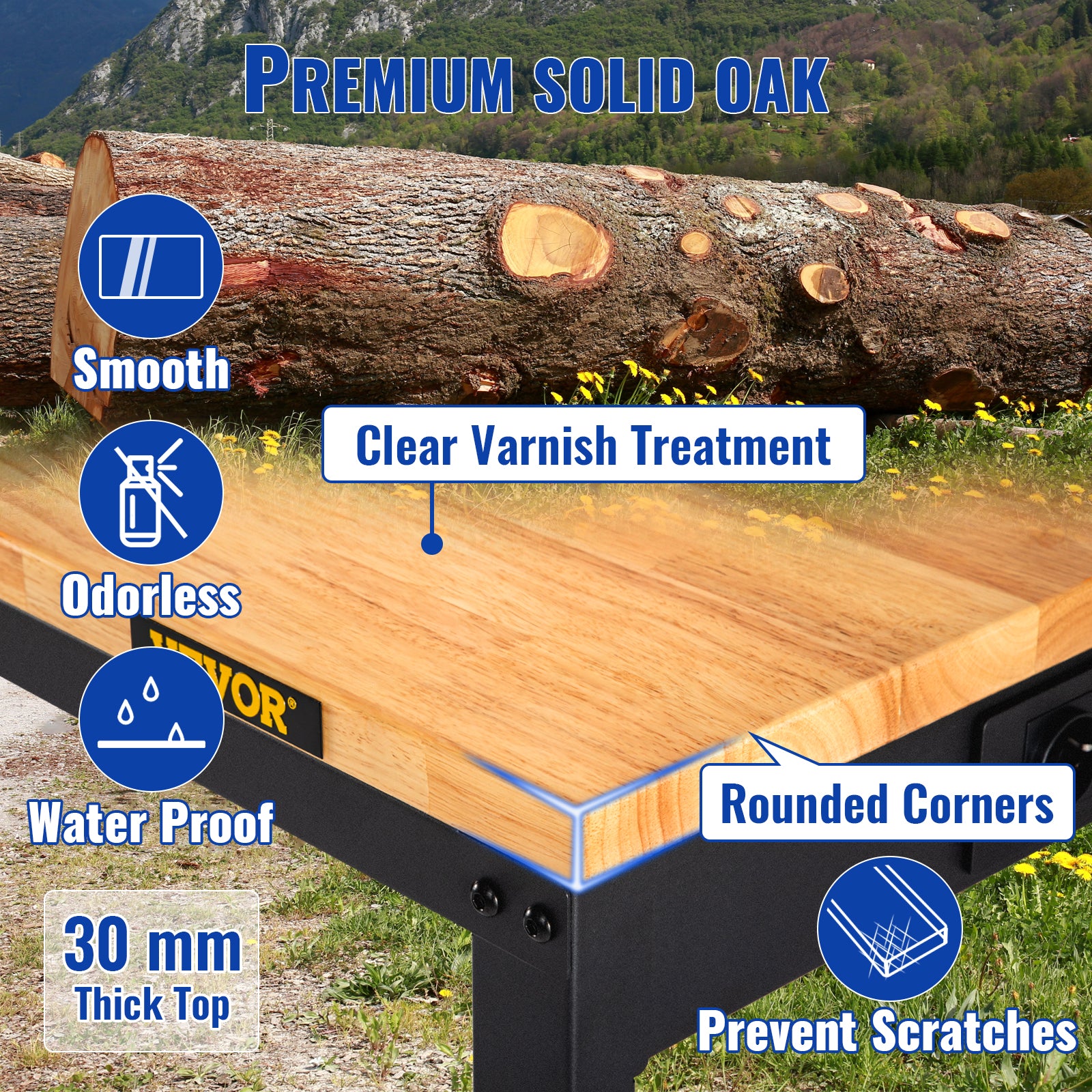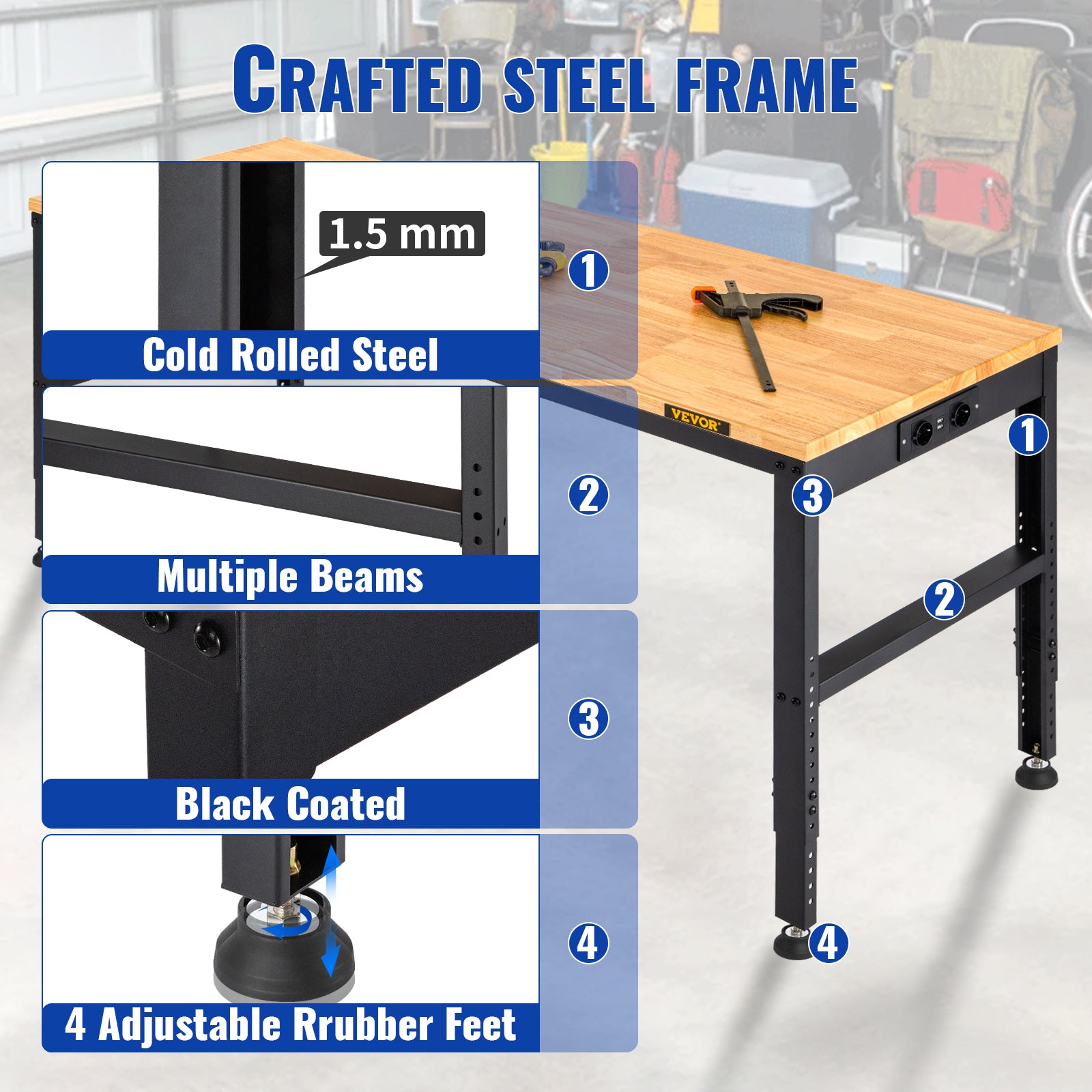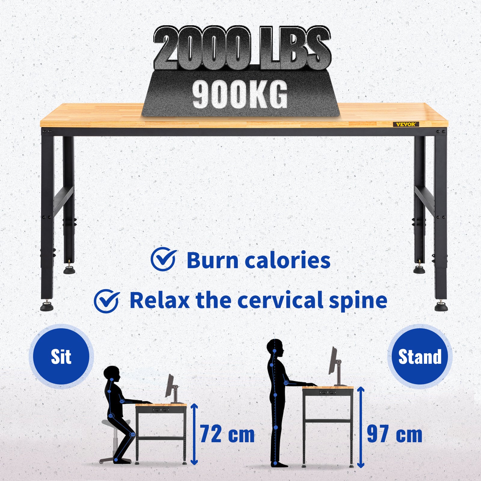 Ljustra Adjustable Height Oak Wood Workbench 900KG Capacity for Workshop