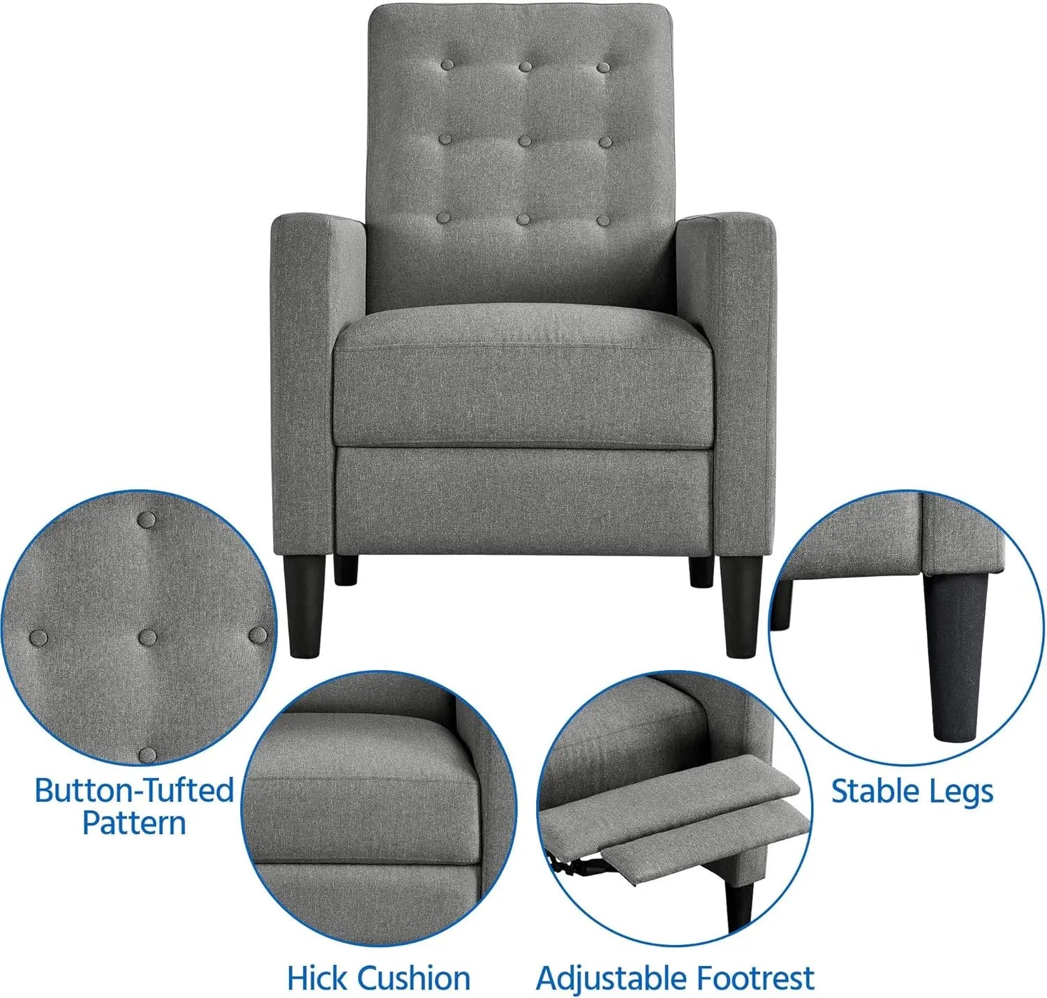 Adjustable Mid-Century Modern Recliner Chair with Thicker Seat Cushion