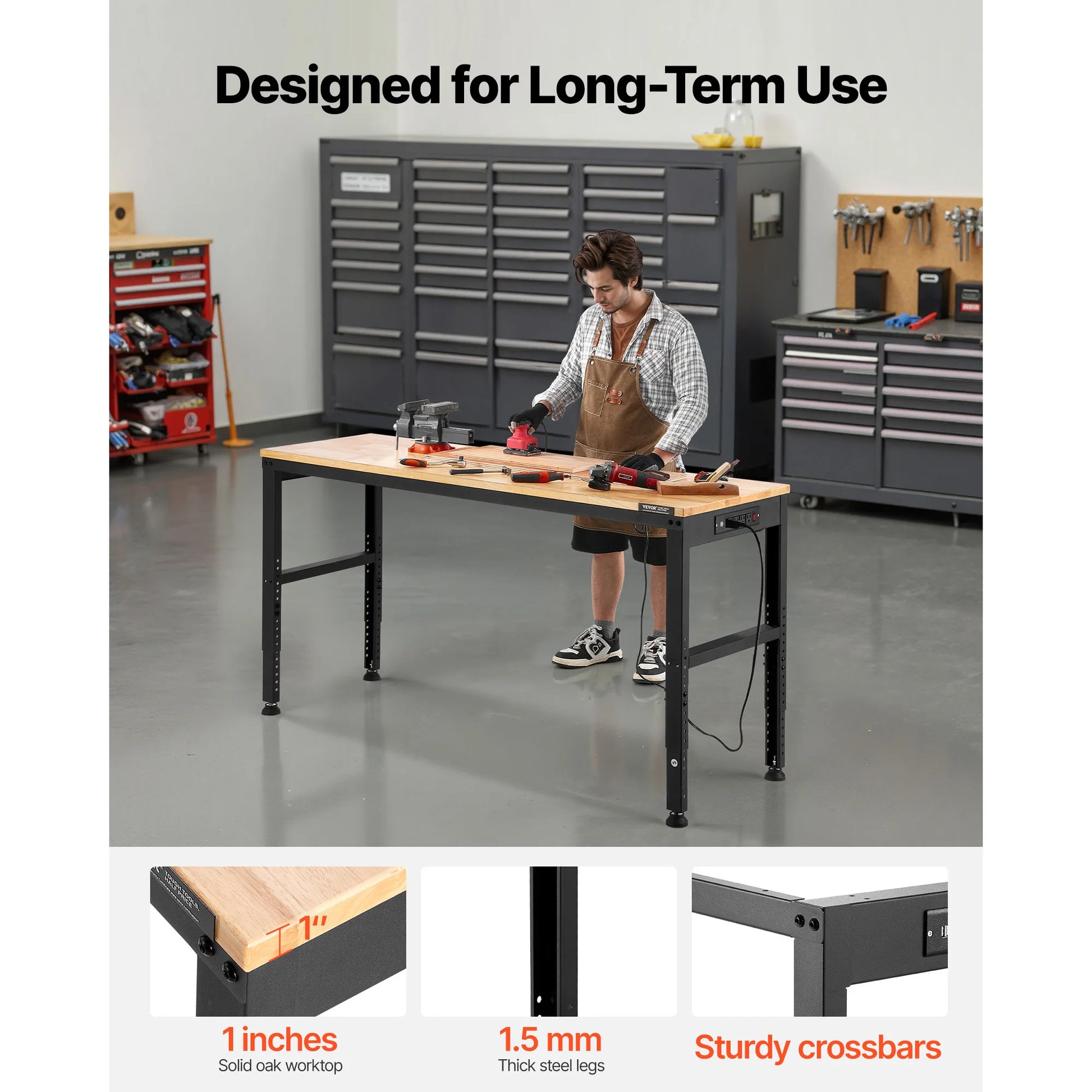 Ljustra Adjustable Workbench Heavy Duty Woodworking with Power Outlets