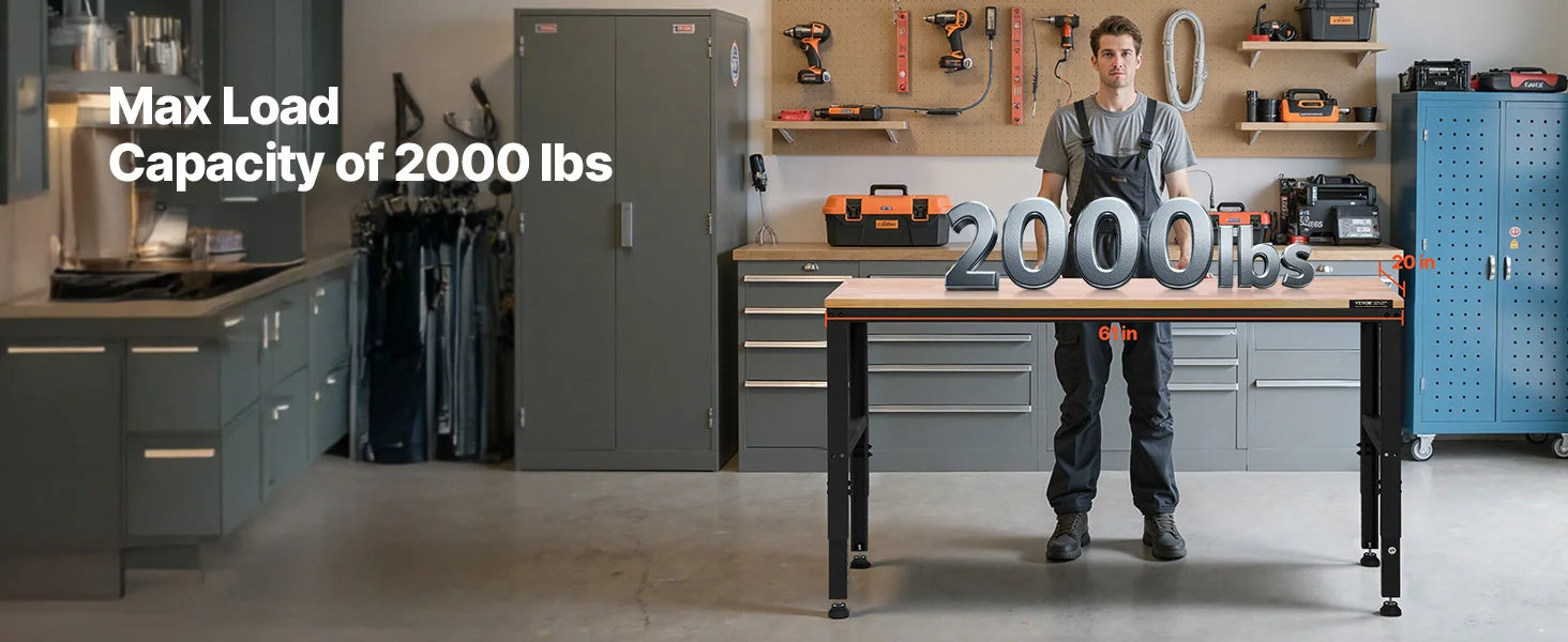 - Heavy-Duty Weight Capacity: Built to handle up to 2,000 lbs, this workbench supports all your tools and equipment with ease.