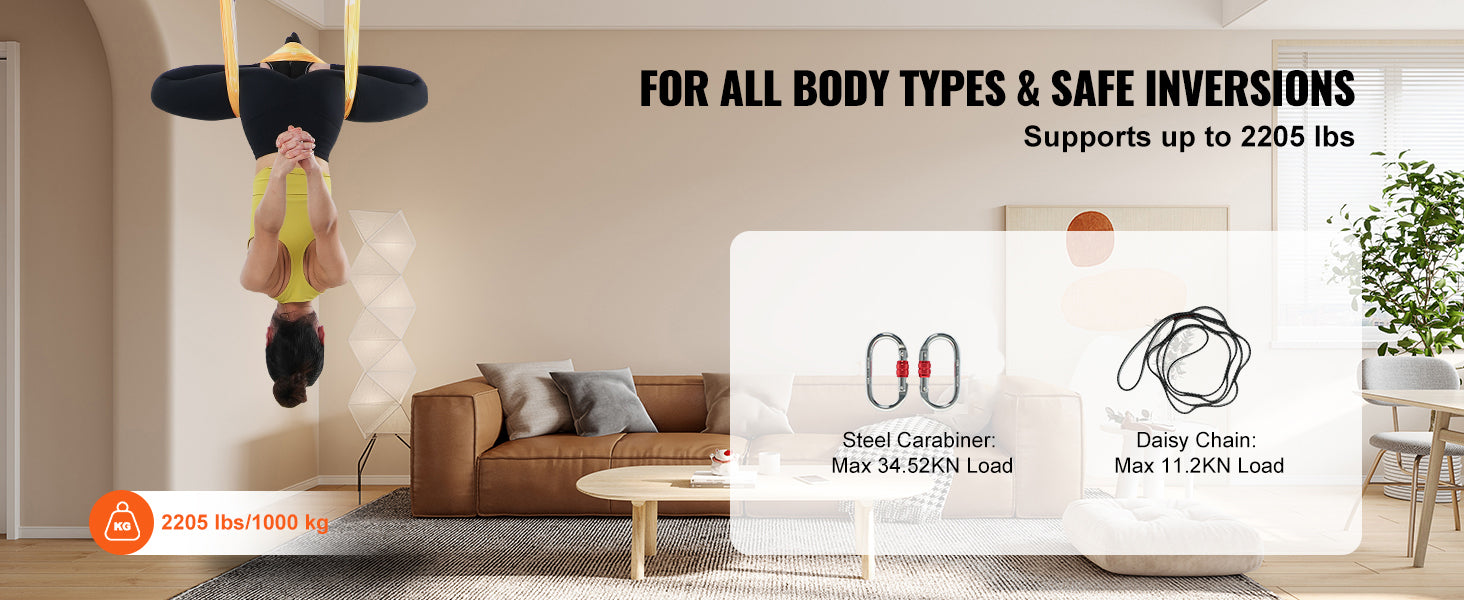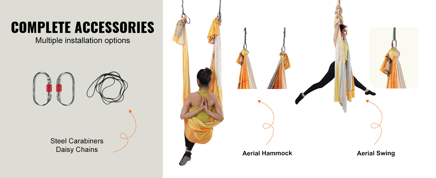 - Comes with a variety of accessories for versatile aerial yoga and leisure activities.