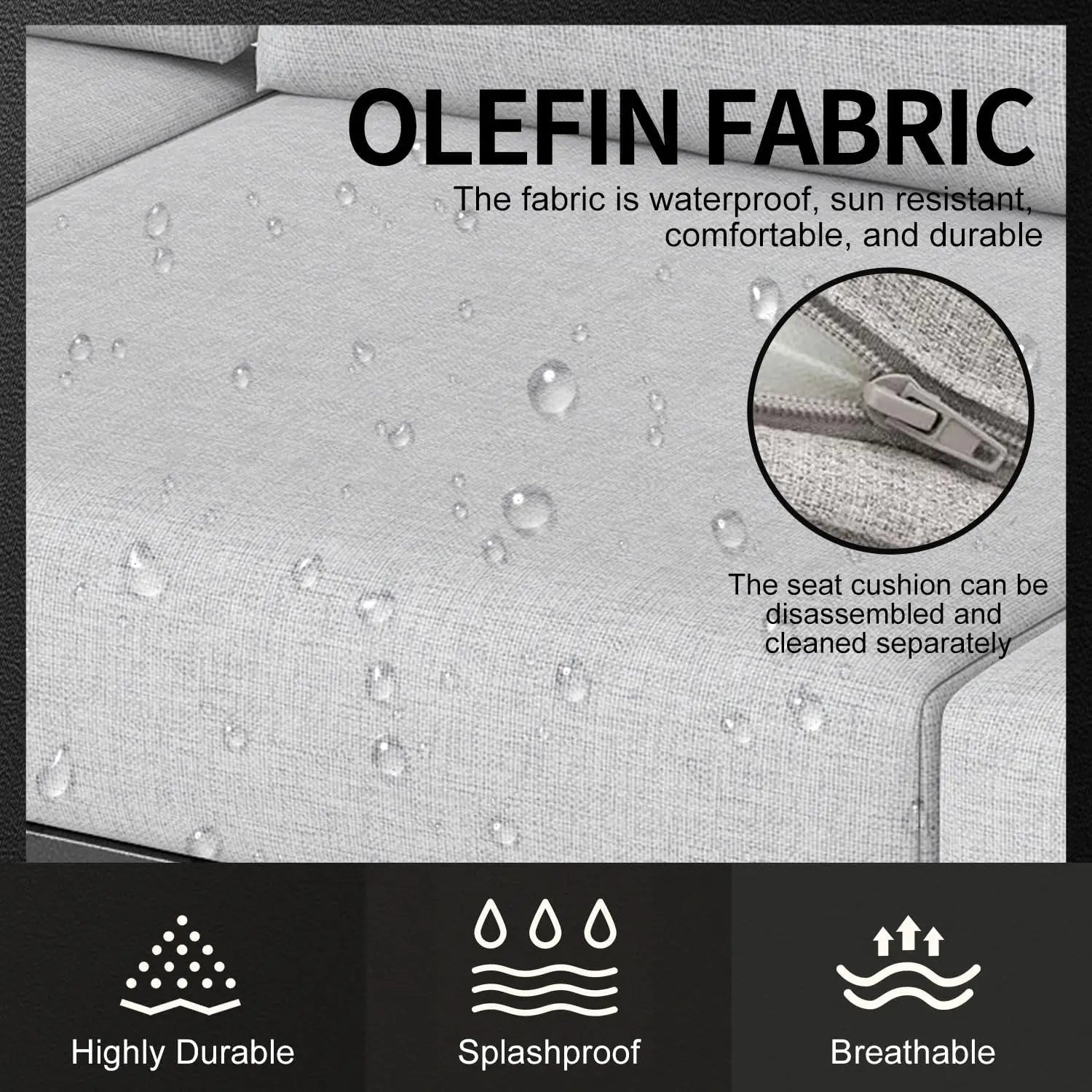 - Premium Olefin Fabric Cushions: Enjoy superior comfort with soft, breathable, and moisture-resistant cushions that are fade-proof and stain-resistant.