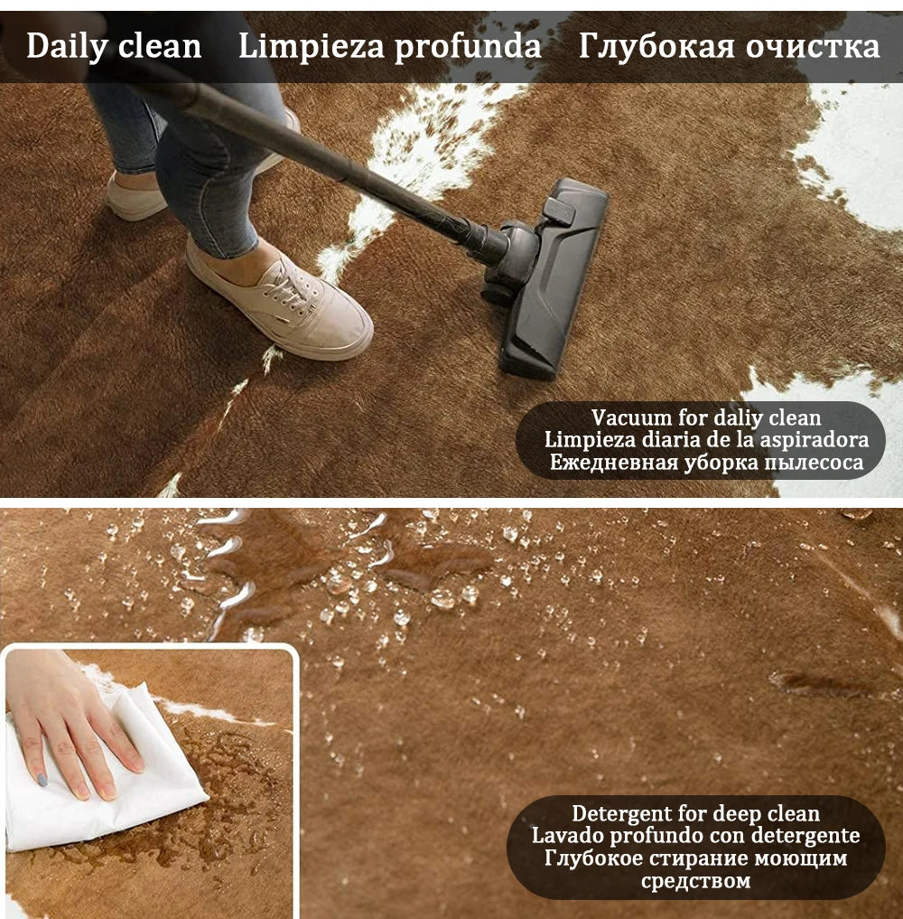 American Style Animal Print Faux Fur Cowhide Rug for Living Room Bedroom