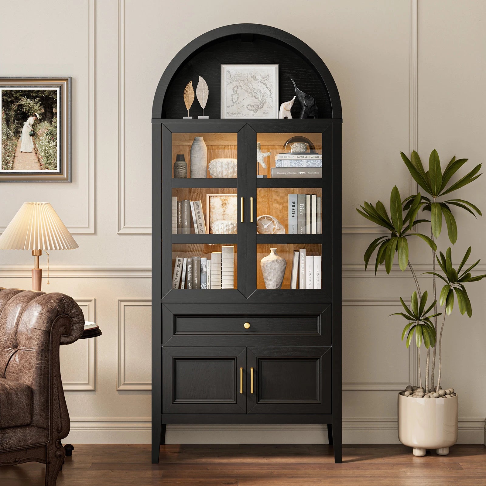 Modern Arched Cabinet with Glass Doors Auto Sensor LED Lights