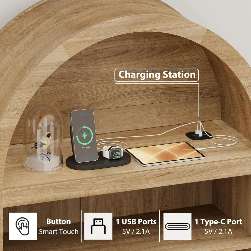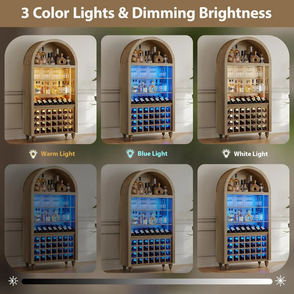 Arched Wine Bar Cabinet 71" Tall Modern Liquor Cabinet with Charging Station