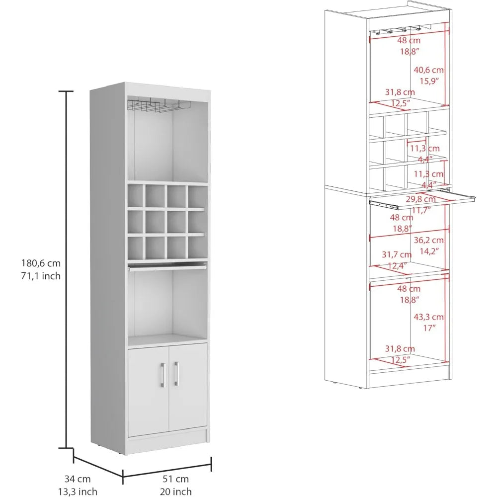71.1 Inch Tall Bar Cabinet with 12-Bottle Cubbies and Glass Holder