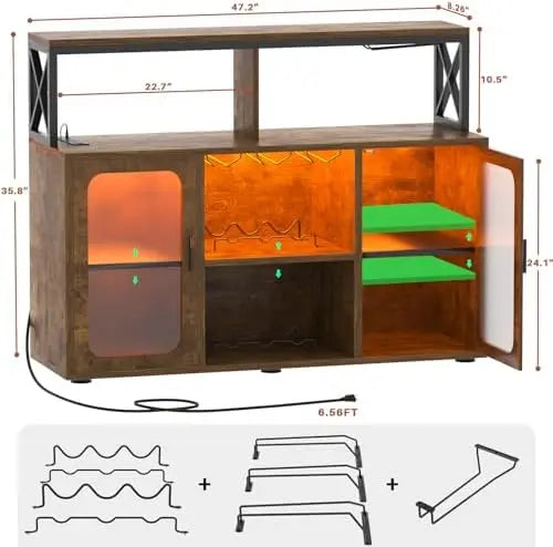 - Ample Storage: Double-layer design with 2 doors, adjustable shelves, wine racks, and glass holders. Store up to 10 bottles of wine and 8 glasses effortlessly.