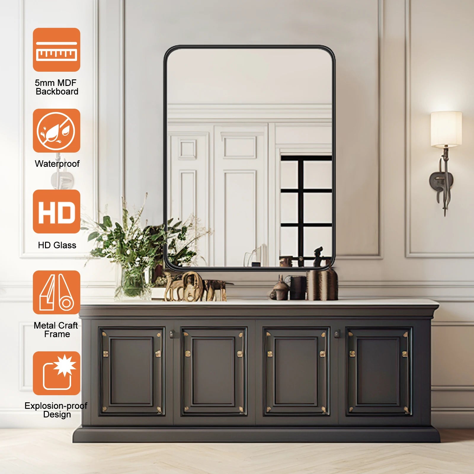 Matte Metal Framed Bathroom Mirror Rounded Corner Tempered Glass