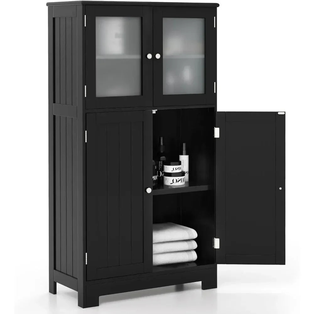 Bathroom Storage Cabinet Wooden Organizer Freestanding Linen Cupboard