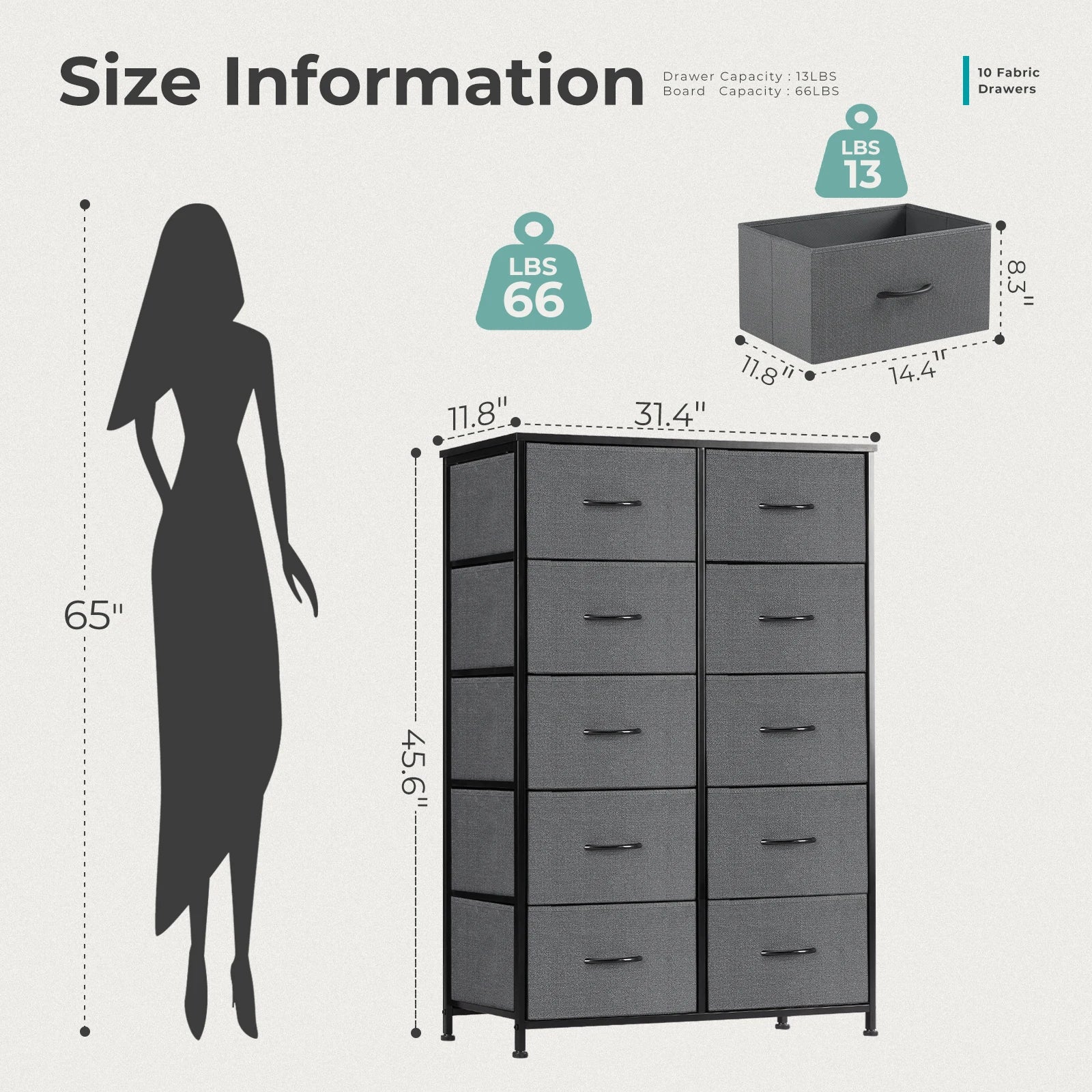 - Large Capacity: Equipped with 10 spacious fabric drawers, it provides endless organizational possibilities while keeping your essentials within reach.