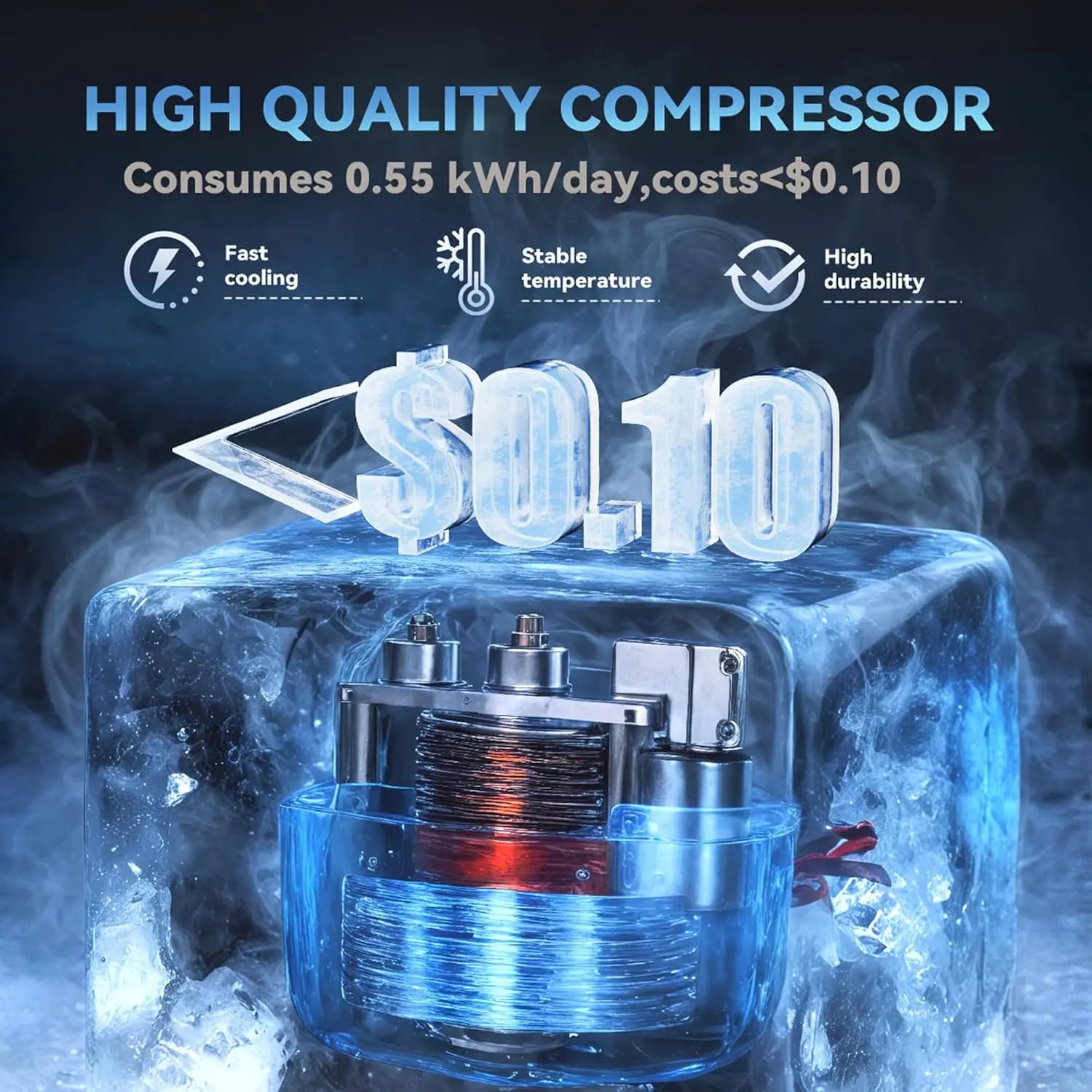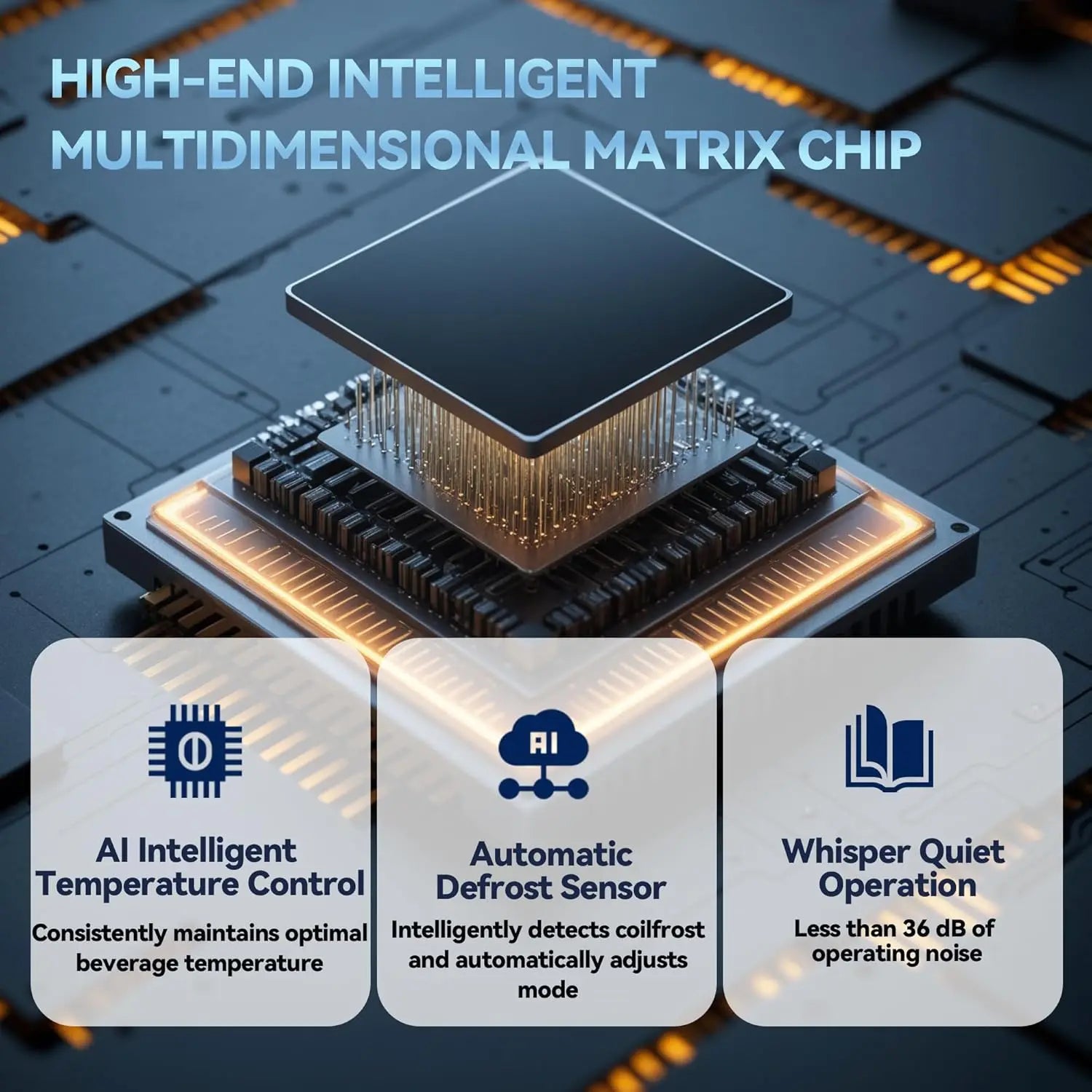 - Advanced Cooling System: Our powerful compressor ensures 360° airflow for consistent cooling, keeping your beverages at the ideal temperature.