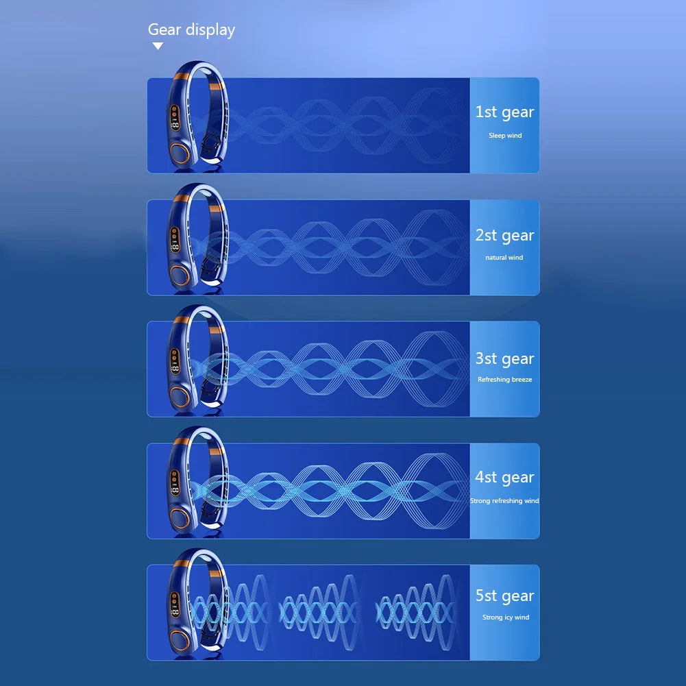 Mute USB Bladeless Neck Fan 5 Speeds Rechargeable Portable Cooling Fan