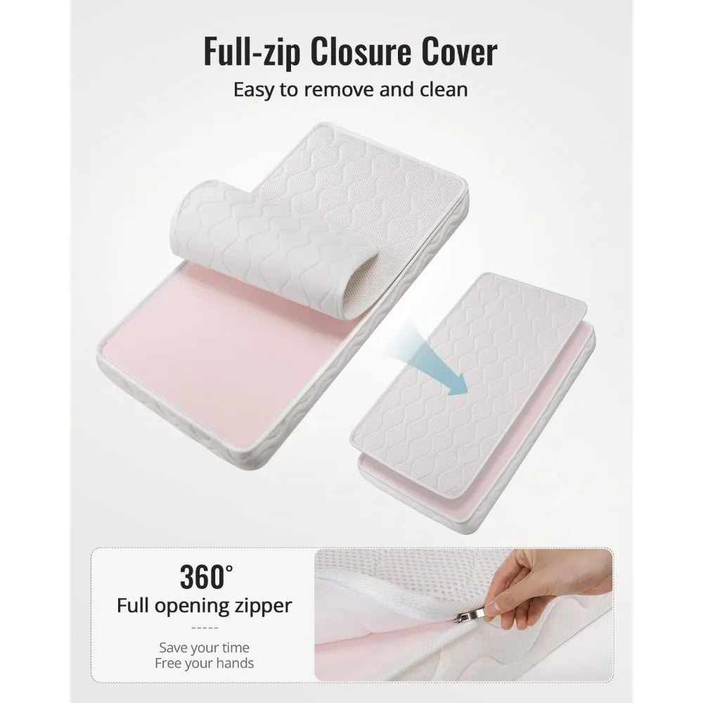 - Skin-friendly & Noiseless: Crafted from soft quilted fabric, our mattress is gentle on your baby's skin and ensures quiet movements for peaceful sleep.