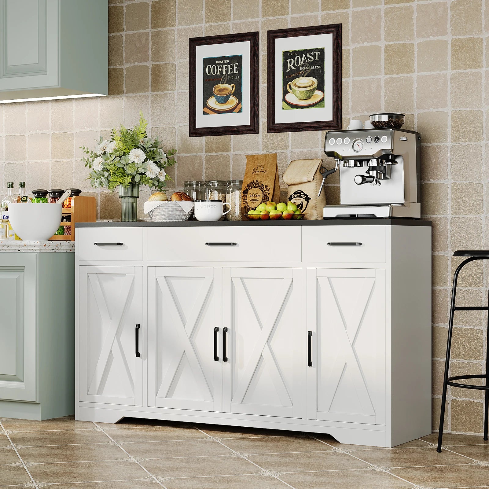 Buffet Cabinet with Storage 55 Inch Sideboard with 3 Drawers 4 Doors