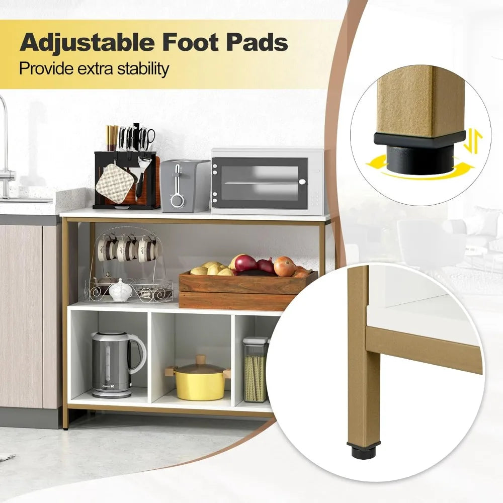 - Plenty of Open Storage Space: Enjoy a spacious tabletop, a wide open shelf, and 3 storage cubbies that allow you to display decorations and access kitchen essentials effortlessly.