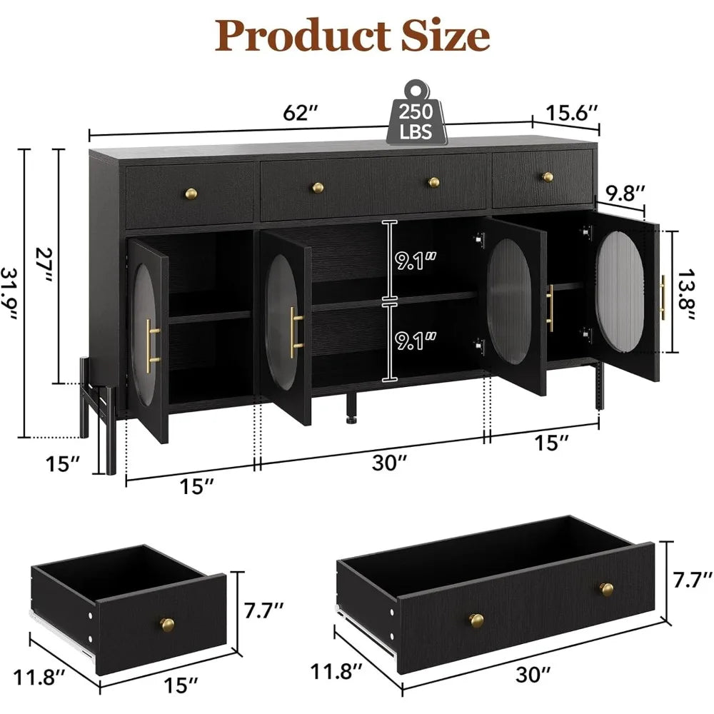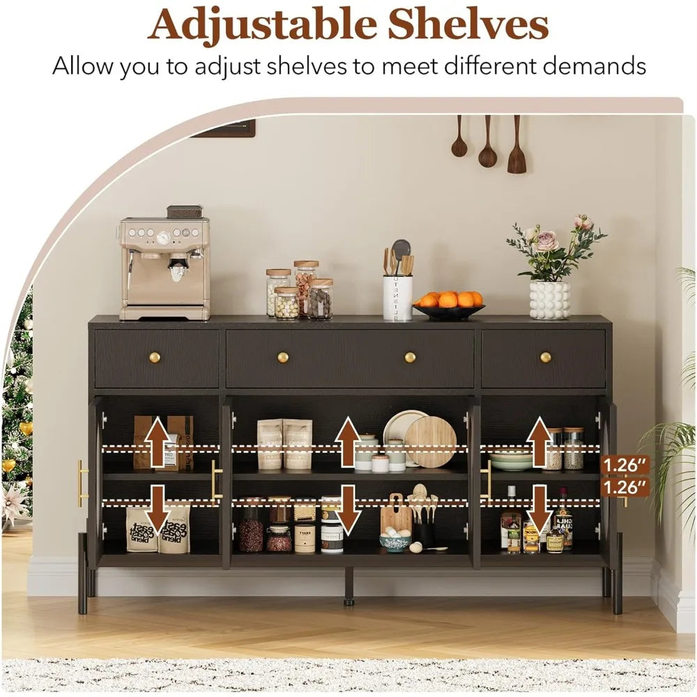 Buffet Cabinet Large Sideboard with Storage 62 Inch Wooden 3 Drawers 4 Doors