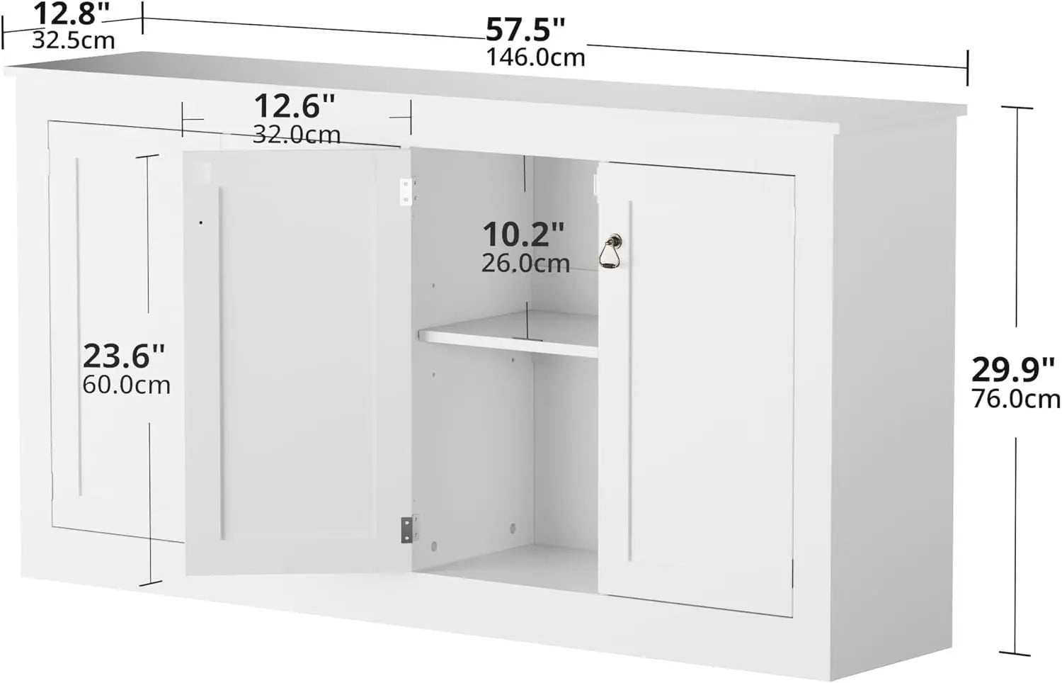 - Spacious Dimensions: Measuring 12.8"D x 57.5"W x 29.9"H, this cabinet provides a generous surface area for displaying coffee bar essentials, decor, or personal treasures.