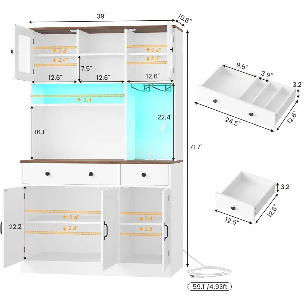 - Large Storage Space: Featuring 5 open storage spaces, 8 hidden cabinets, and 2 compartmentalized drawers for organized kitchenware.