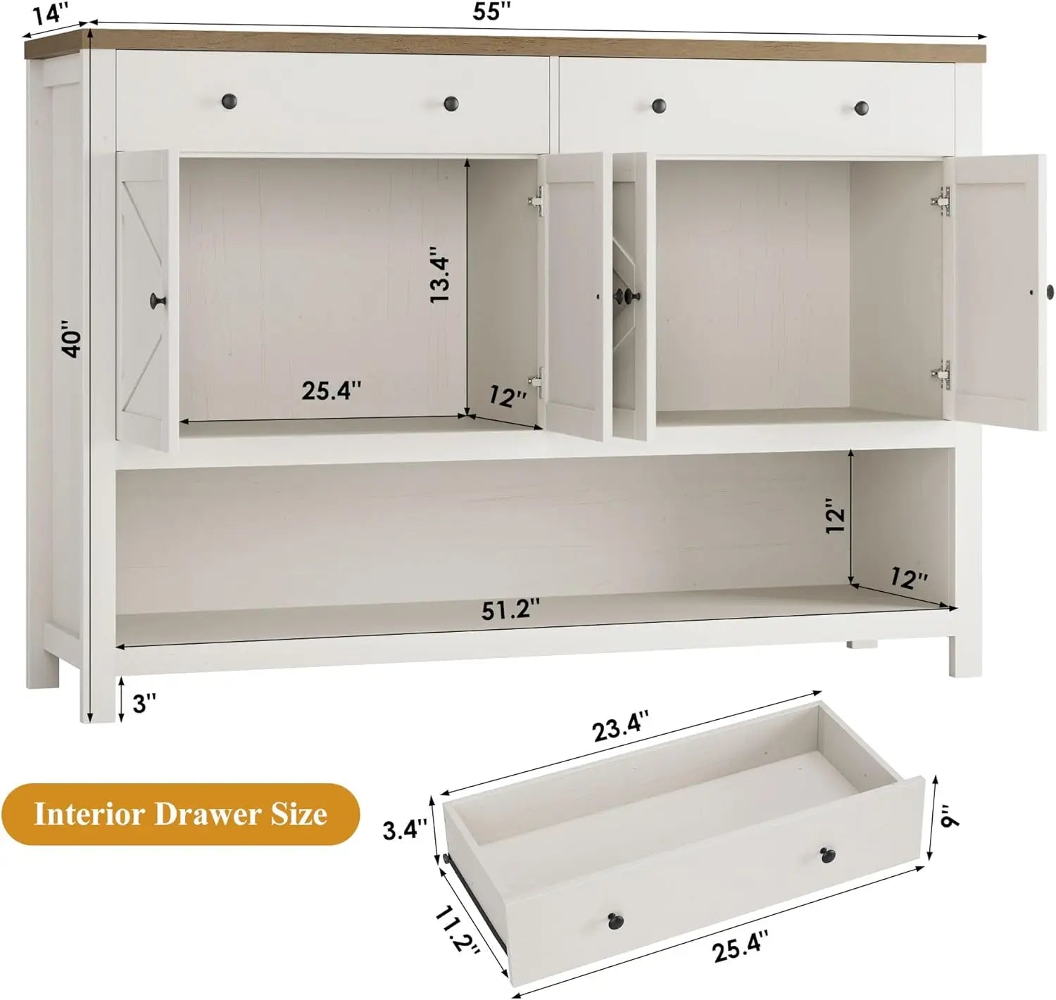 - Ample Storage: Featuring 4 doors, 2 spacious drawers, and a semi-open compartment, this buffet cabinet provides versatile storage for your essentials, from dishware to decorative items.