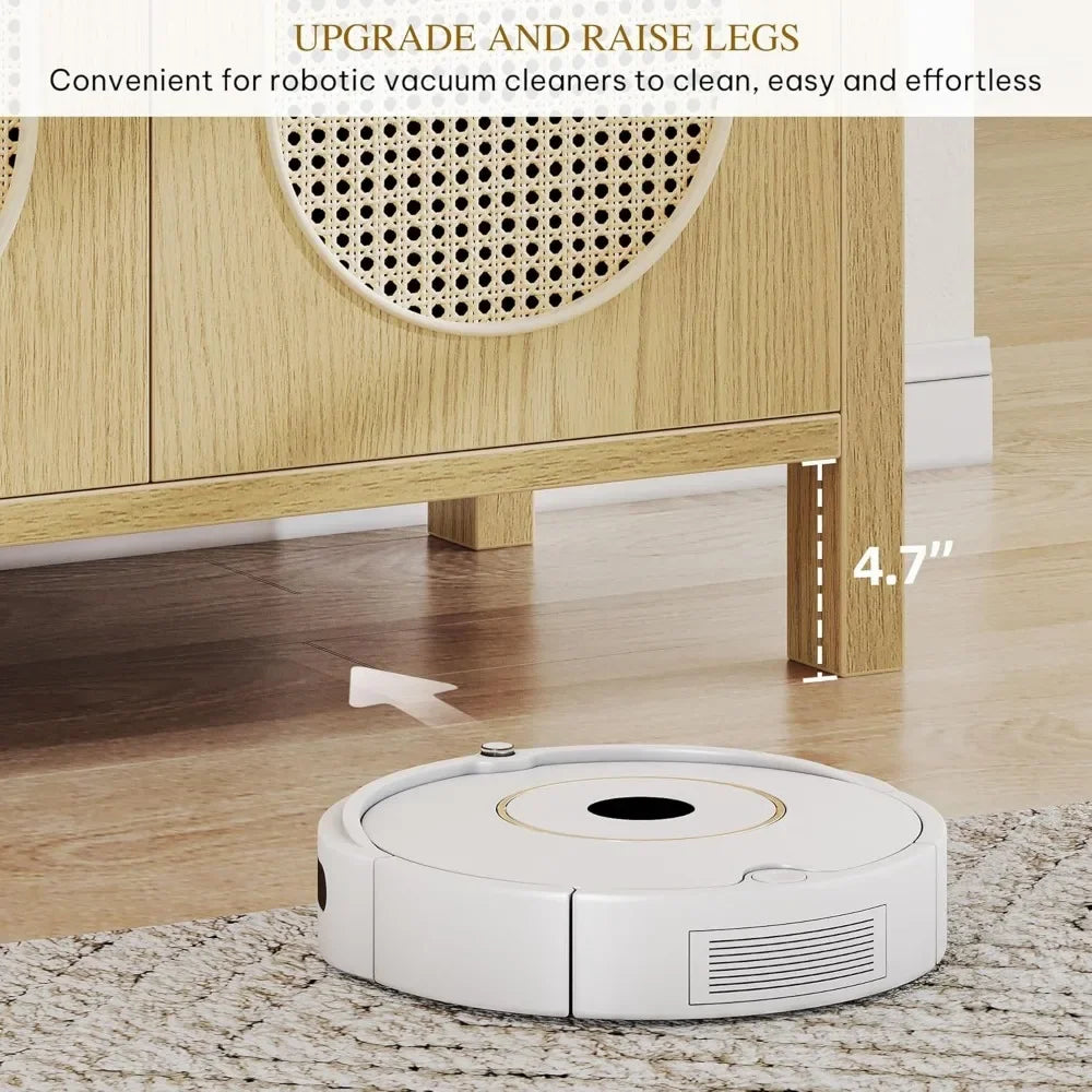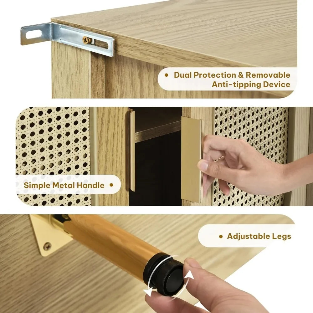 63 Inch Buffet Sideboard Cabinet Storage Rattan 4 Doors Adjustable Shelves