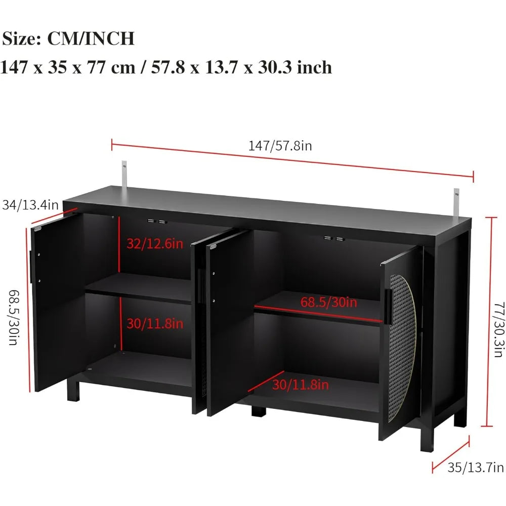 Buffet Sideboard Cabinet with Rattan Doors Mid-Century Modern Storage