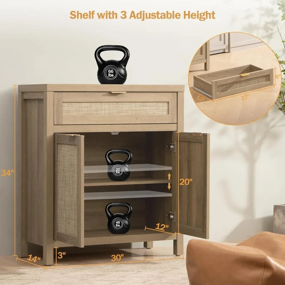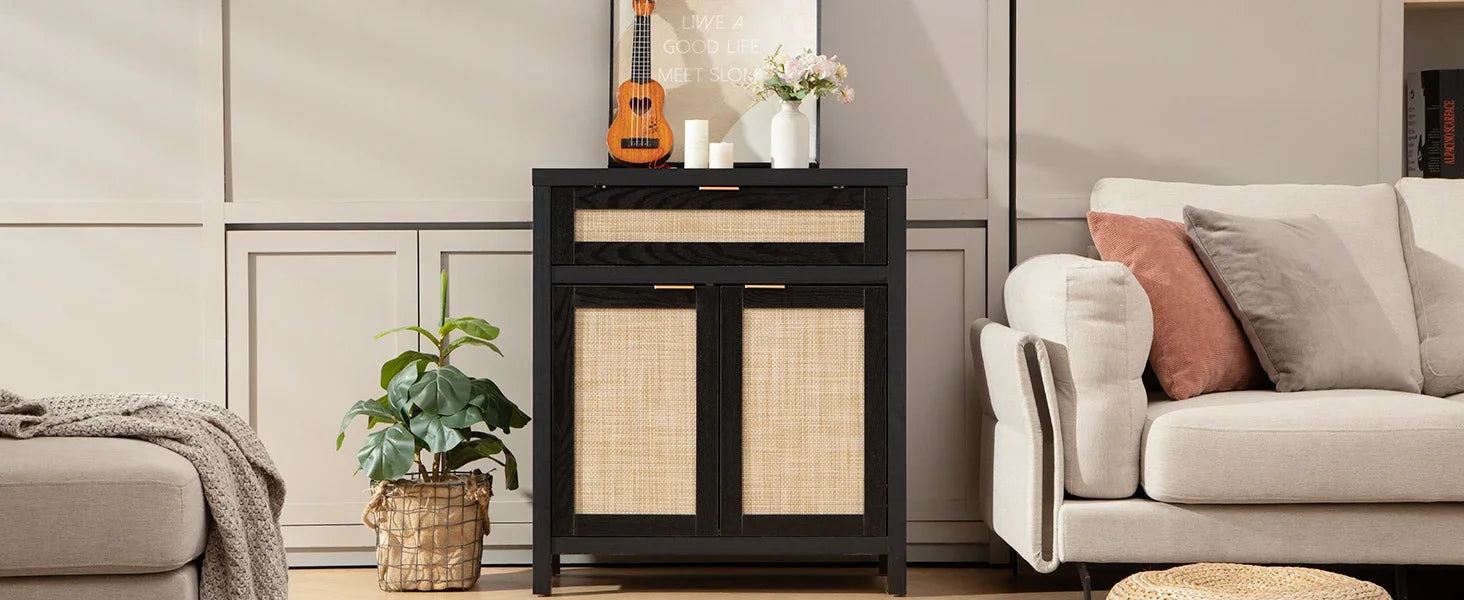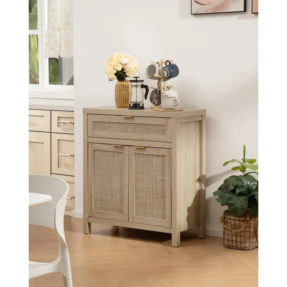 - Ample Storage: The spacious rattan cabinet and drawer offer large storage capacity for dishes, silverware, and more. Customize your space with the adjustable shelf!