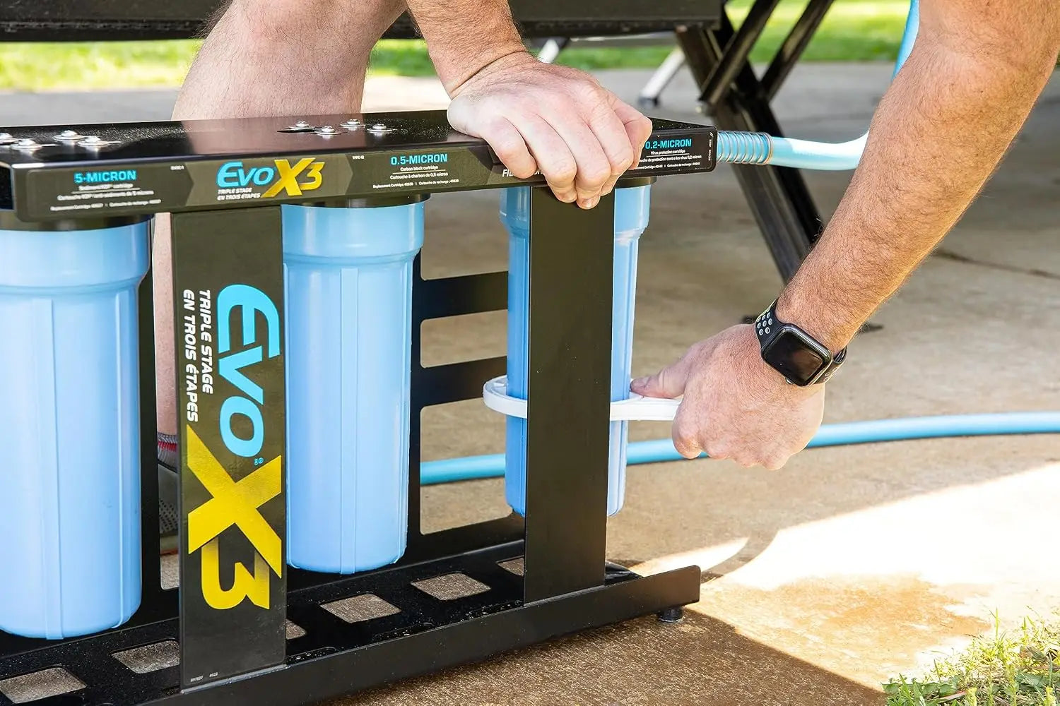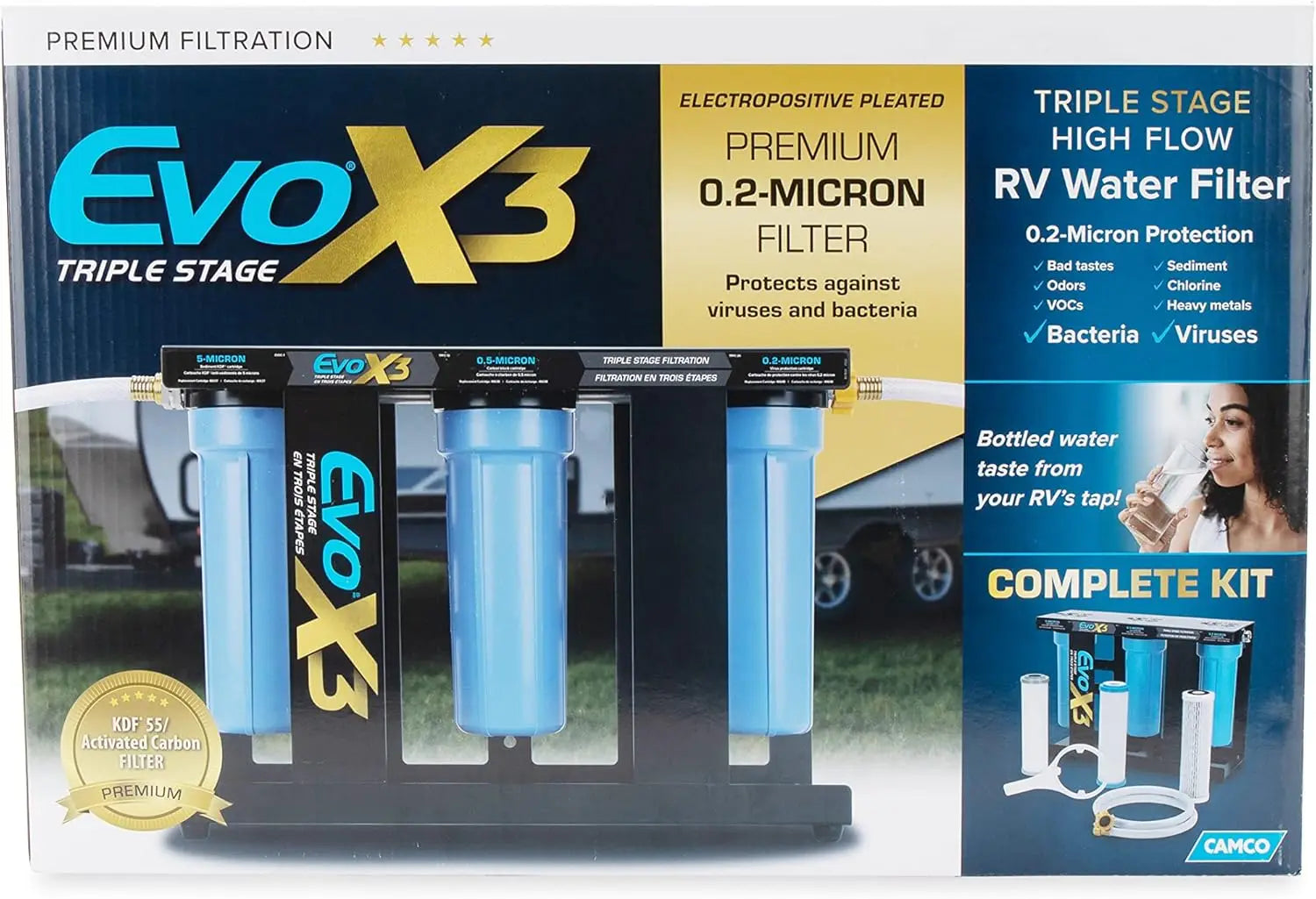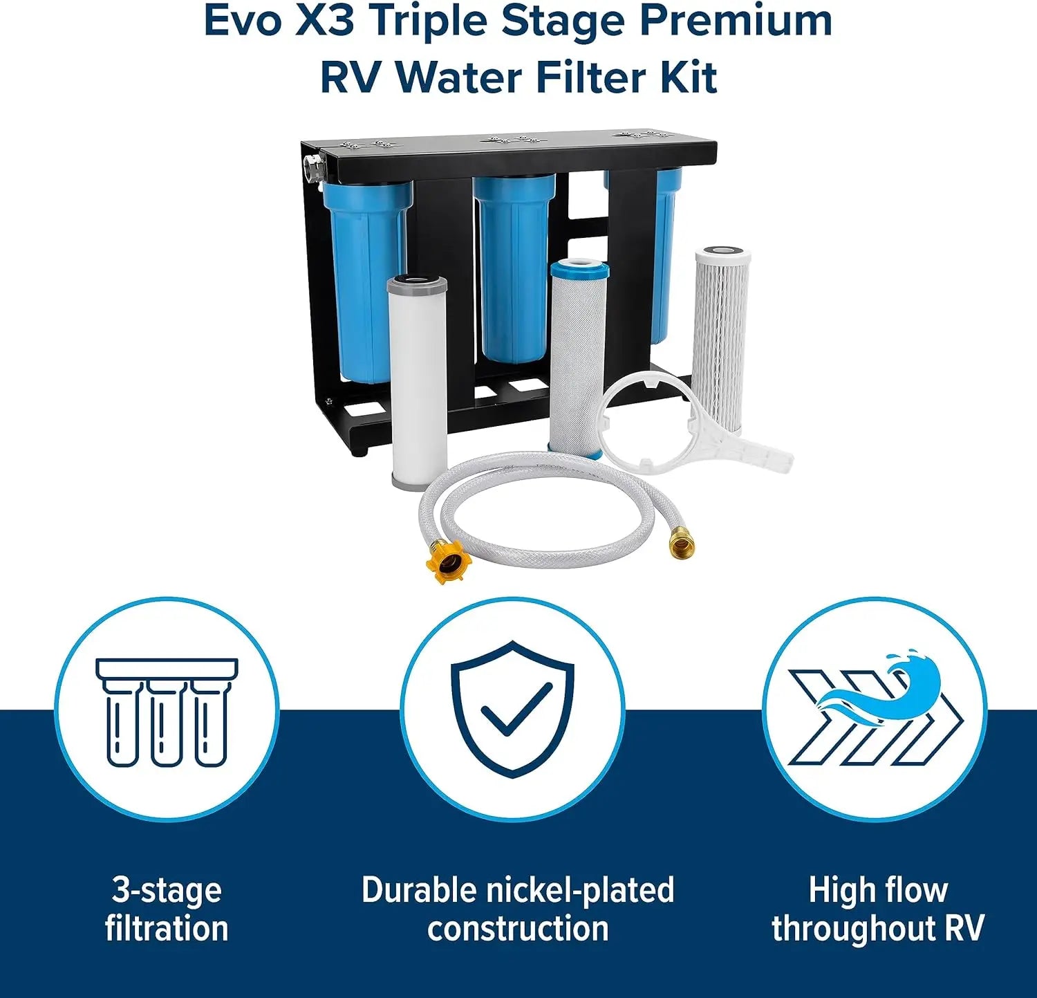 Camco Evo X3 RV Water Filter Kit Premium Triple Stage Inline Filtration