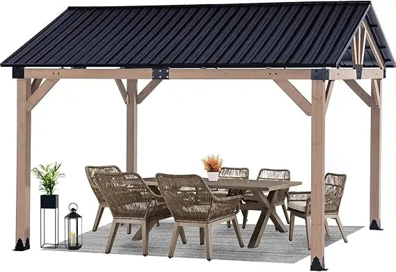 10x12 Foot Cedar Frame Hardtop Gazebo Steel Roof Outdoor Pavilion