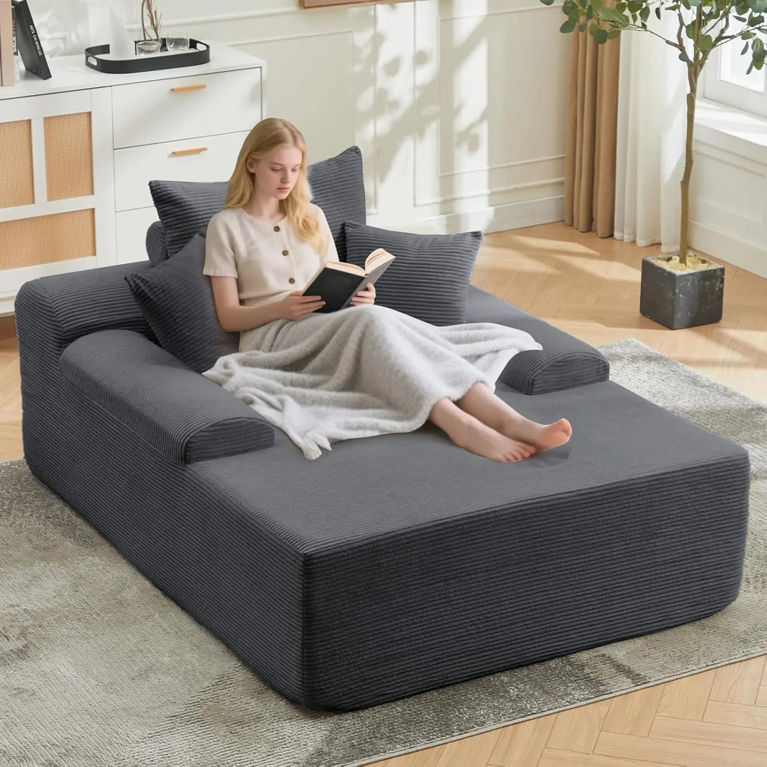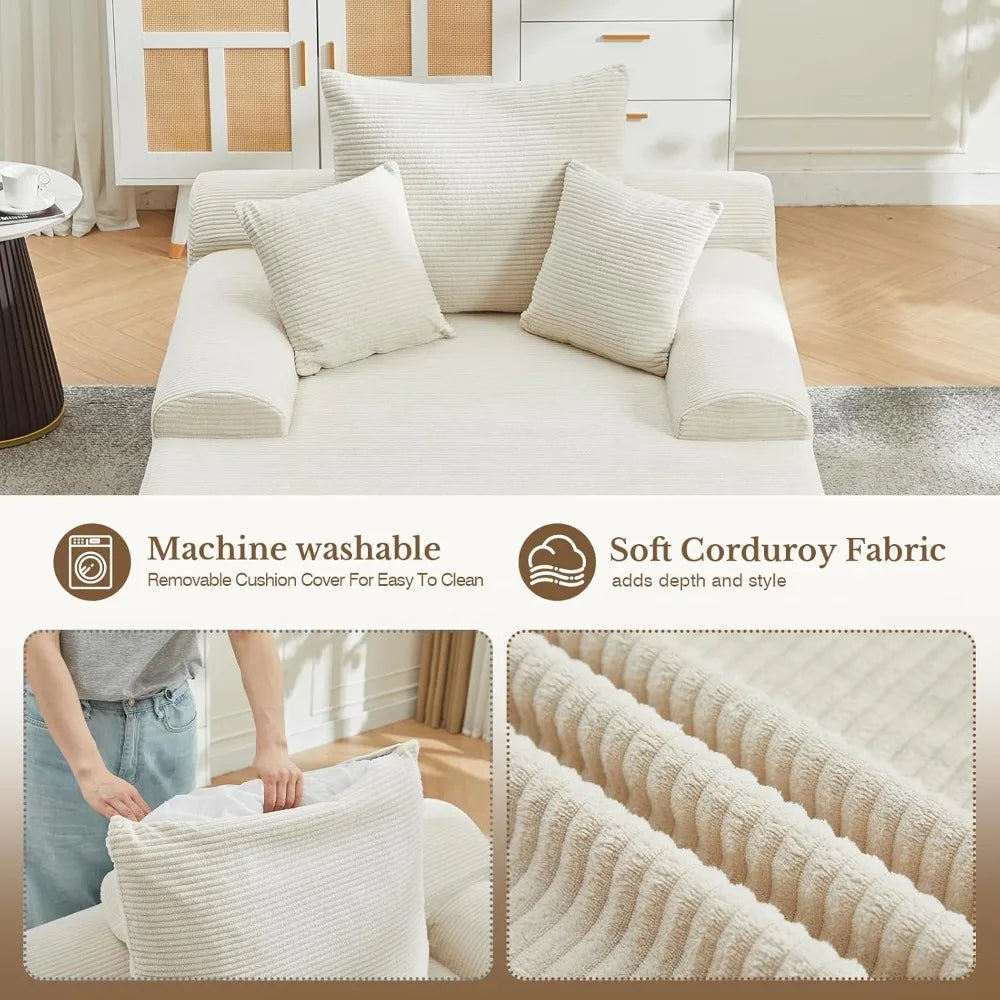 Ljustra Chaise Lounge Chair Indoor Corduroy Sofa Bed with 3 Pillows