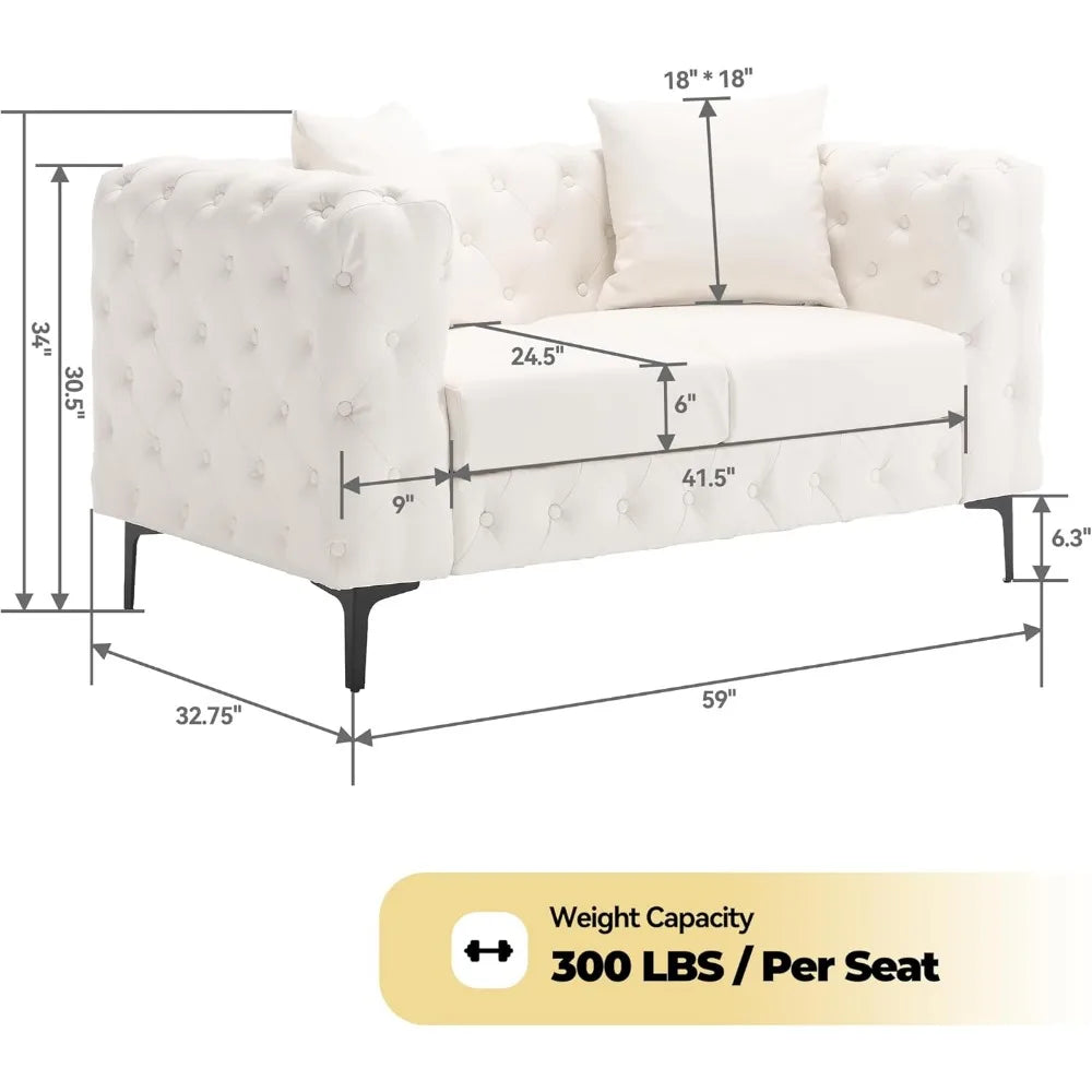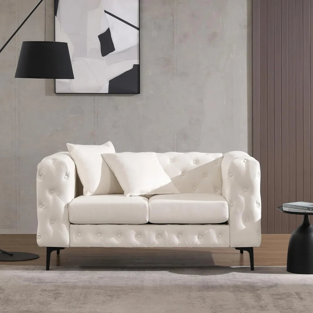 - Stylish Design: The button-tufted back and sleek metal legs give this loveseat a sophisticated look that complements any décor.