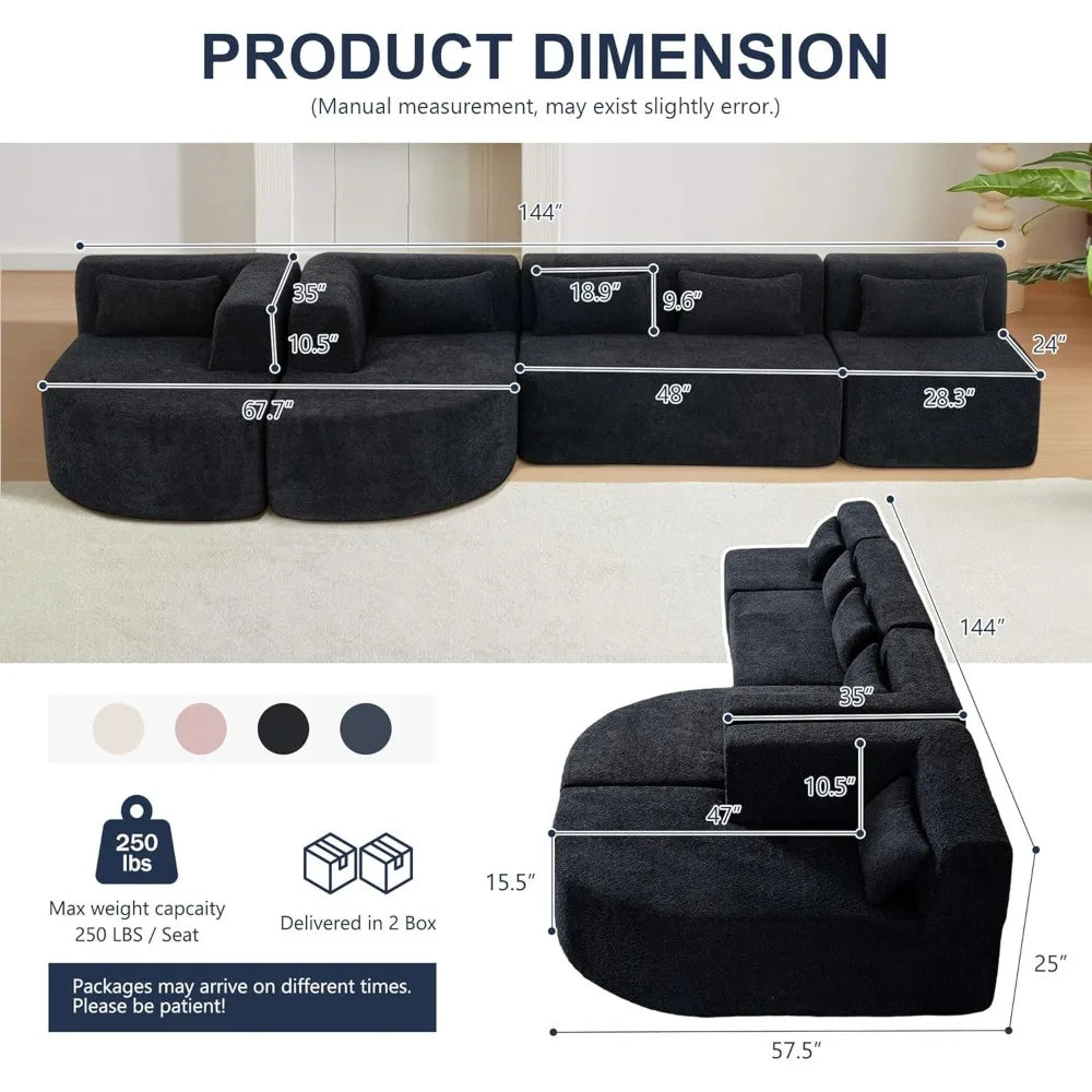 144 Inch Modular Cloud Sectional Sofa Deep Seat with Chaise Lounge and Pillows