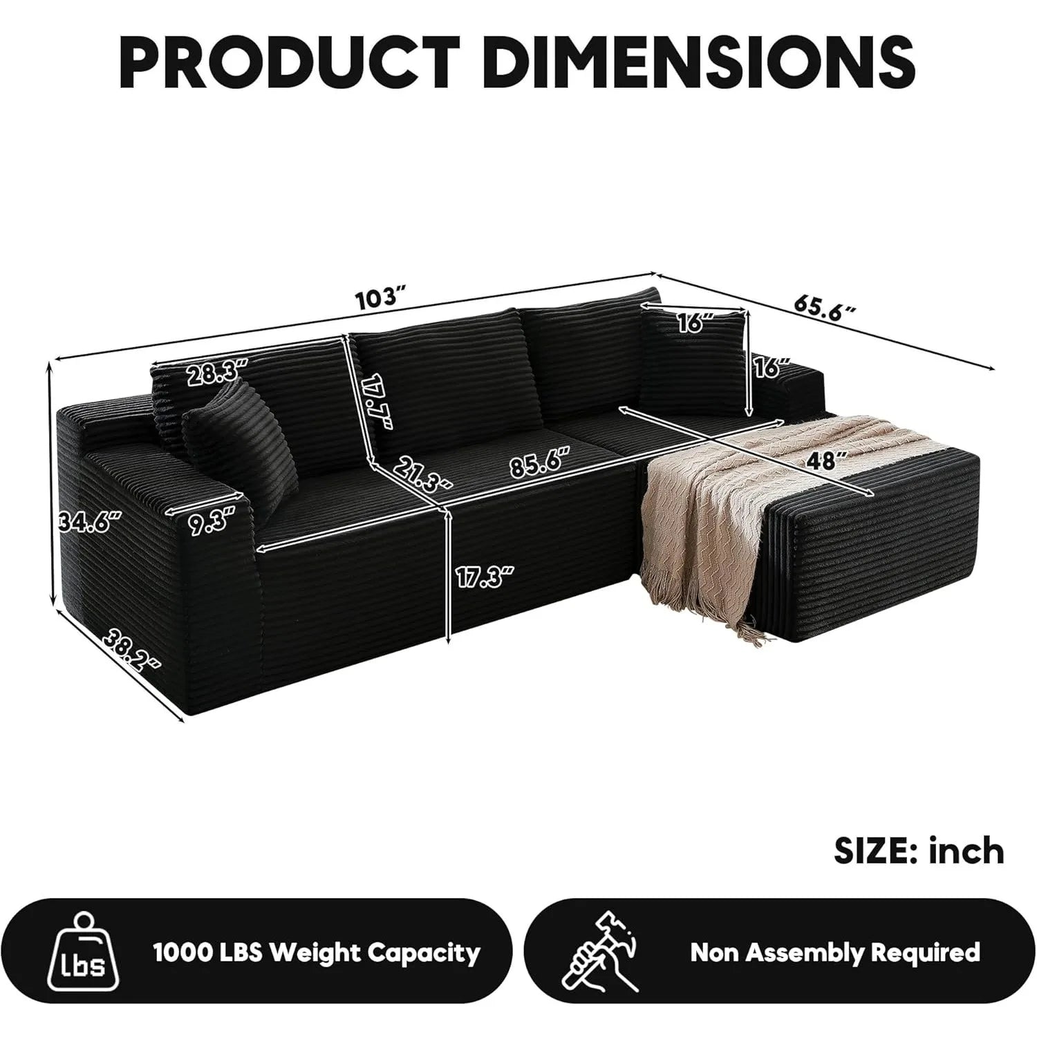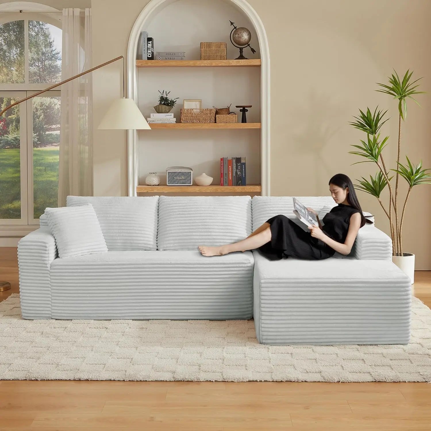 Modern L-Shape Modular Sectional Sofa Deep Seat Corduroy Couch