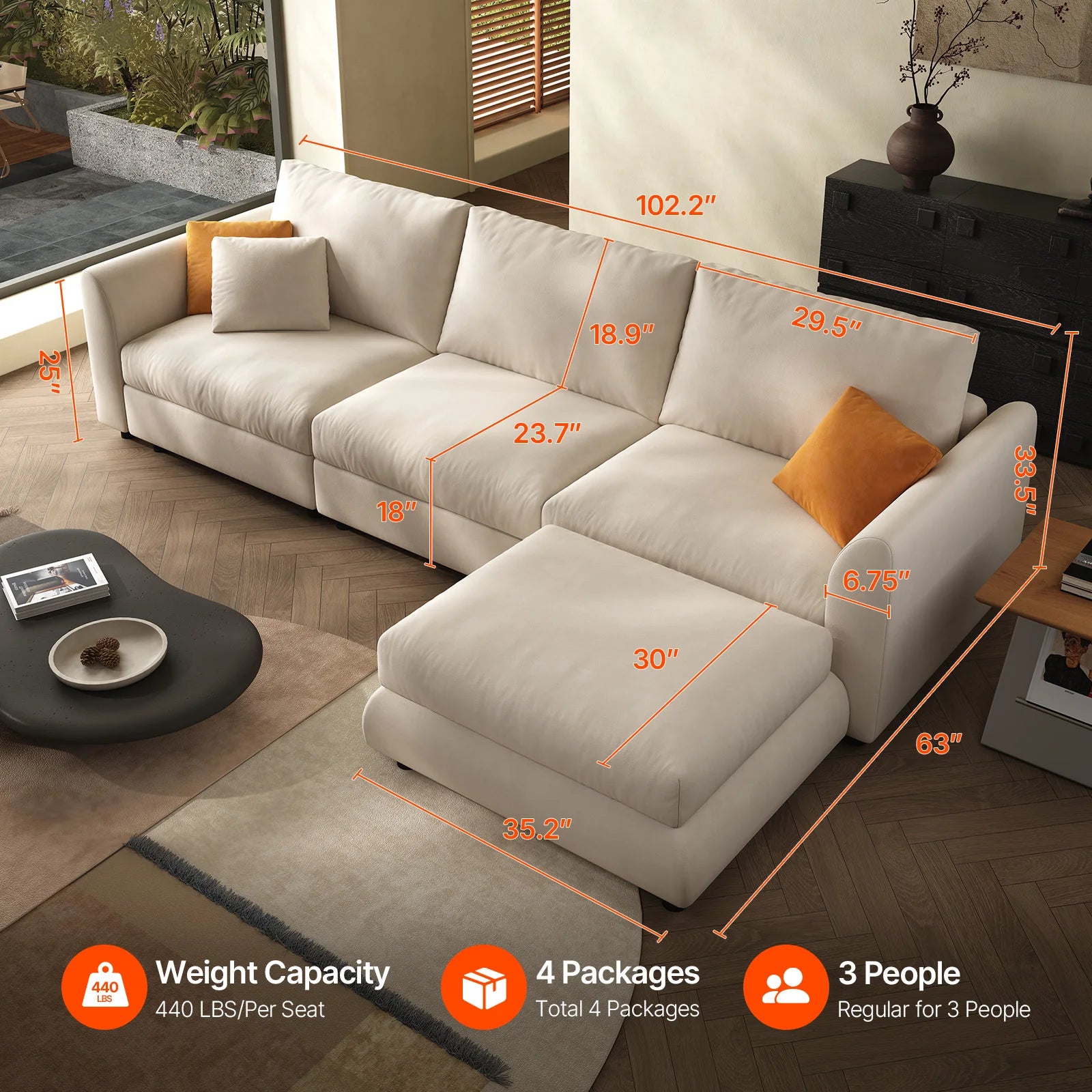 Ljustra Comfy Cloud Couch 108.2" Modern Sectional Sofa with Ottoman