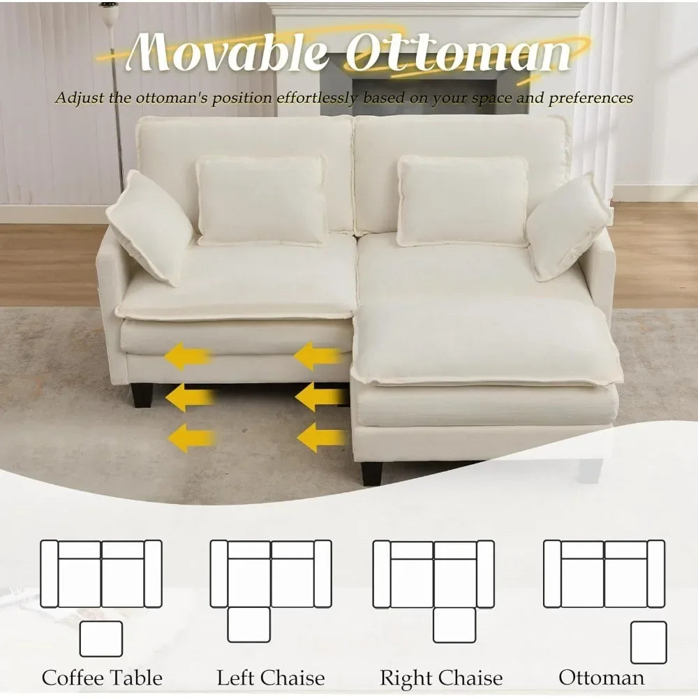 L-Shaped Modular Sectional Comfy Cloud Couch with Movable Ottoman