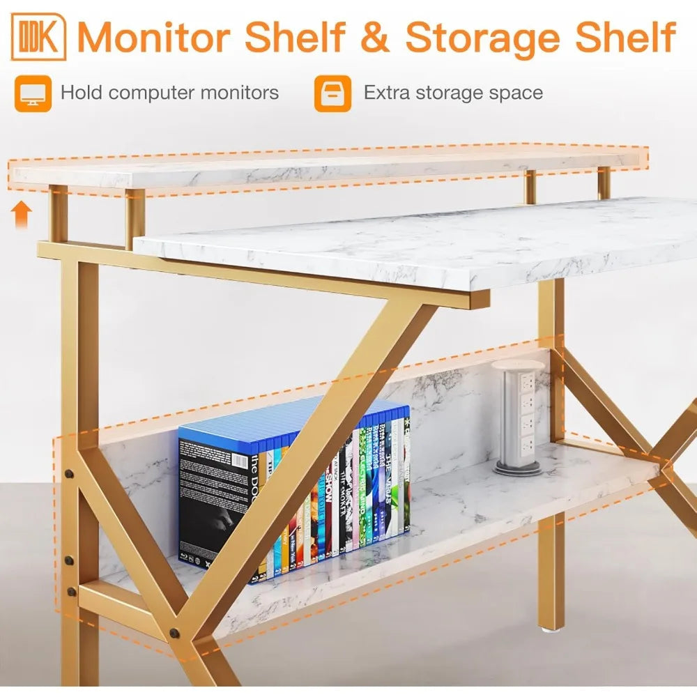 - Monitor Shelf & Storage: Equipped with a monitor shelf that accommodates two screens, this desk promotes ergonomic use, reducing neck strain. Plus, the storage shelf allows for additional space for essentials.