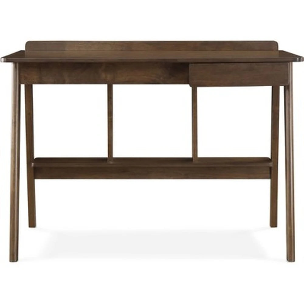 Compact Mid Century Modern Writing Desk Rubberwood Slim Profile Storage