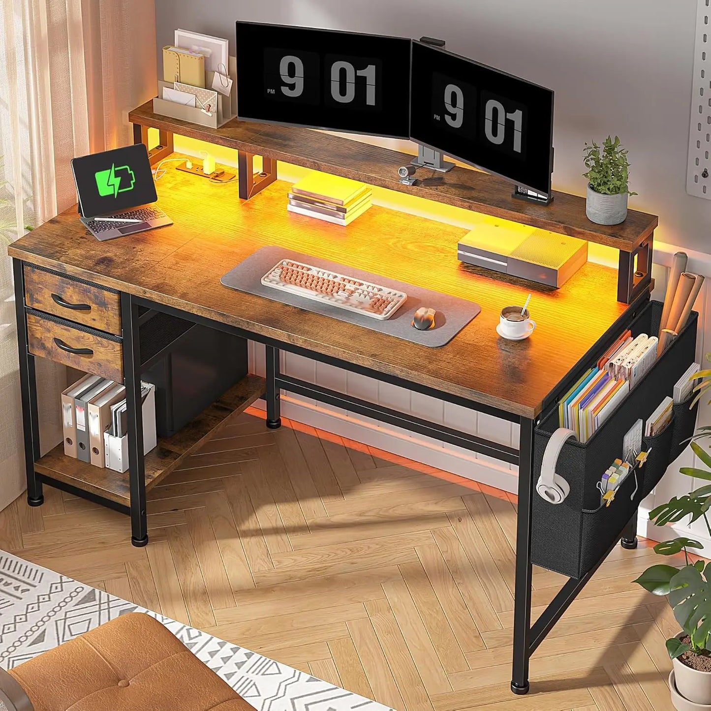 Ljustra Computer Desk with Drawers Storage Bag Power Outlets Monitor Stand