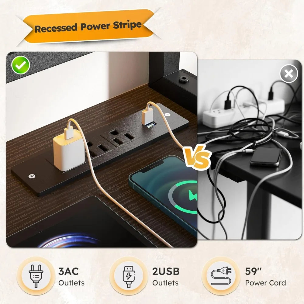 - Integrated Power & Charging: Features 3 standard sockets and 2 USB ports, allowing you to power up to 5 devices simultaneously, keeping your workspace clutter-free.